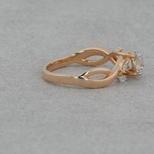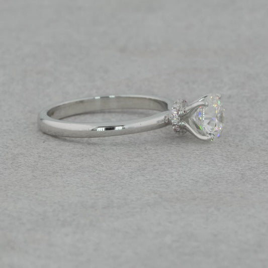 Purecarat Round Diamond Engagement Ring with Pave Yellow Gold Band | Solitaire with Accents Ring