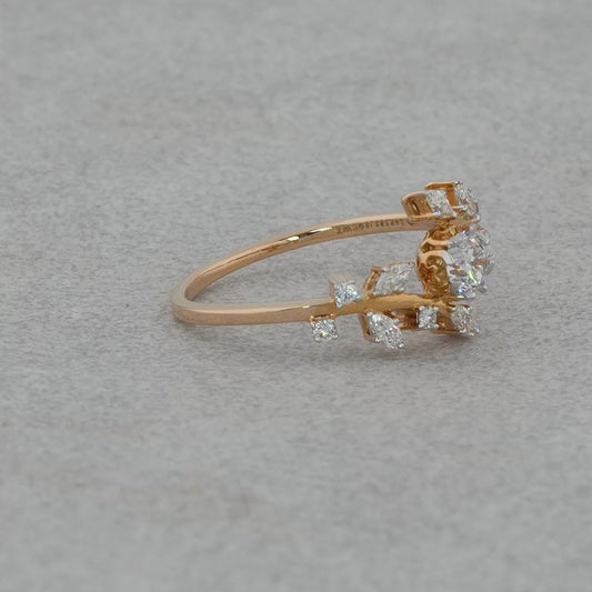 Purecarat Yellow Gold Diamond Cluster Engagement Ring | Pave Band