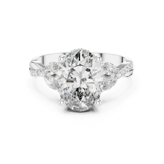 14K White Gold Emerald & Oval Lab-Grown Diamond Engagement Ring for Women | Pure Carat