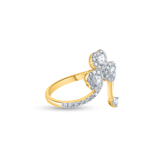 Purecarat Yellow Gold Triple Heart Diamond Floral Ring