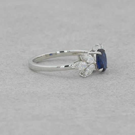 Sapphire tiara ring, Blue Sapphire Pear Cut Diamond Curve Shape Double Row Ring