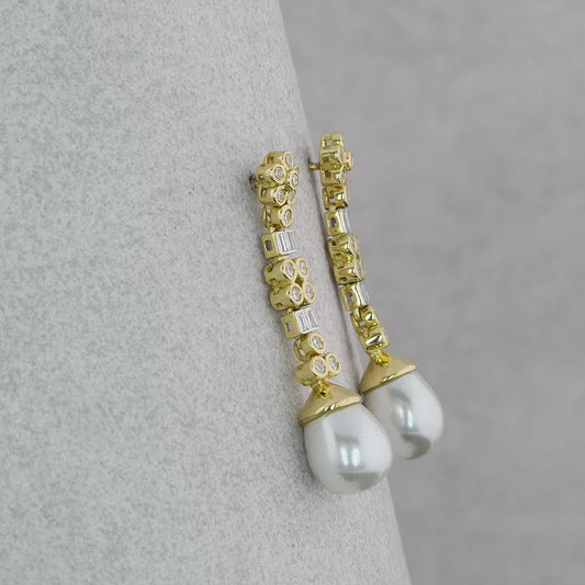 18k Yellow Gold Renaissance Cultured South Sea Pearl & Diamond Flower Drop Earrings