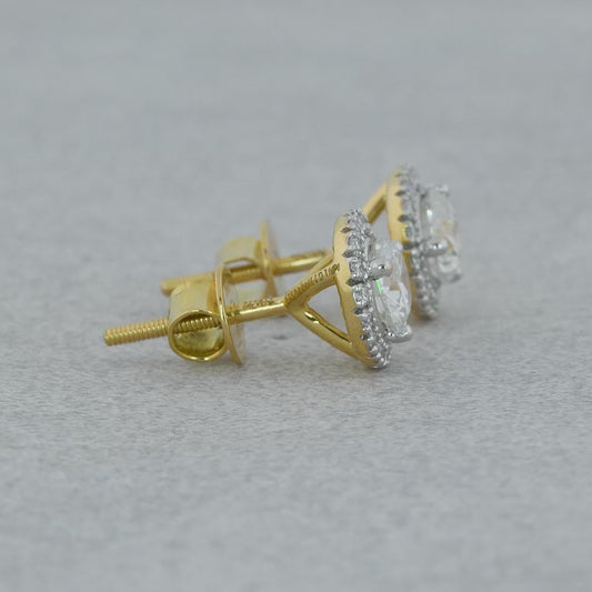 Purecarat Yellow Gold Half Moon Diamond Halo Stud Earrings