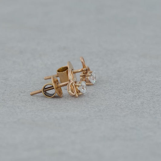 Purecarat 14K Yellow Gold Princess Cut Diamond Stud Earrings