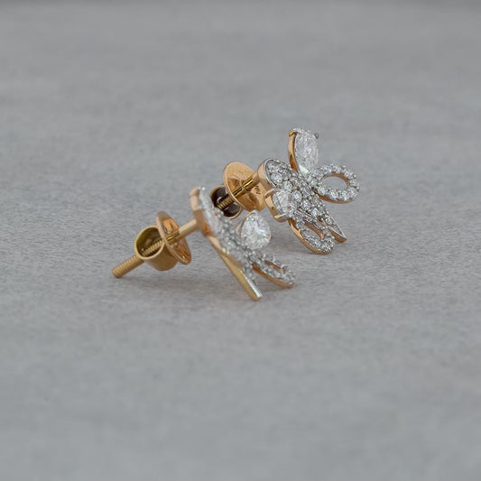 Purecarat Yellow Gold Nakshatra Diamond Flower Stud Earrings