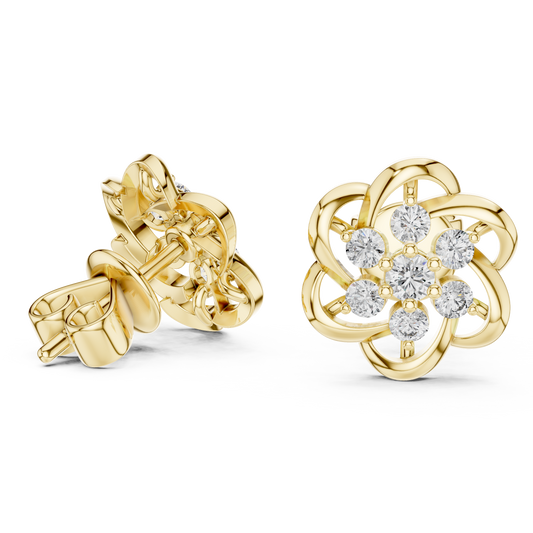 Purecarat Yellow Gold Nakshatra Diamond Flower Stud Earrings