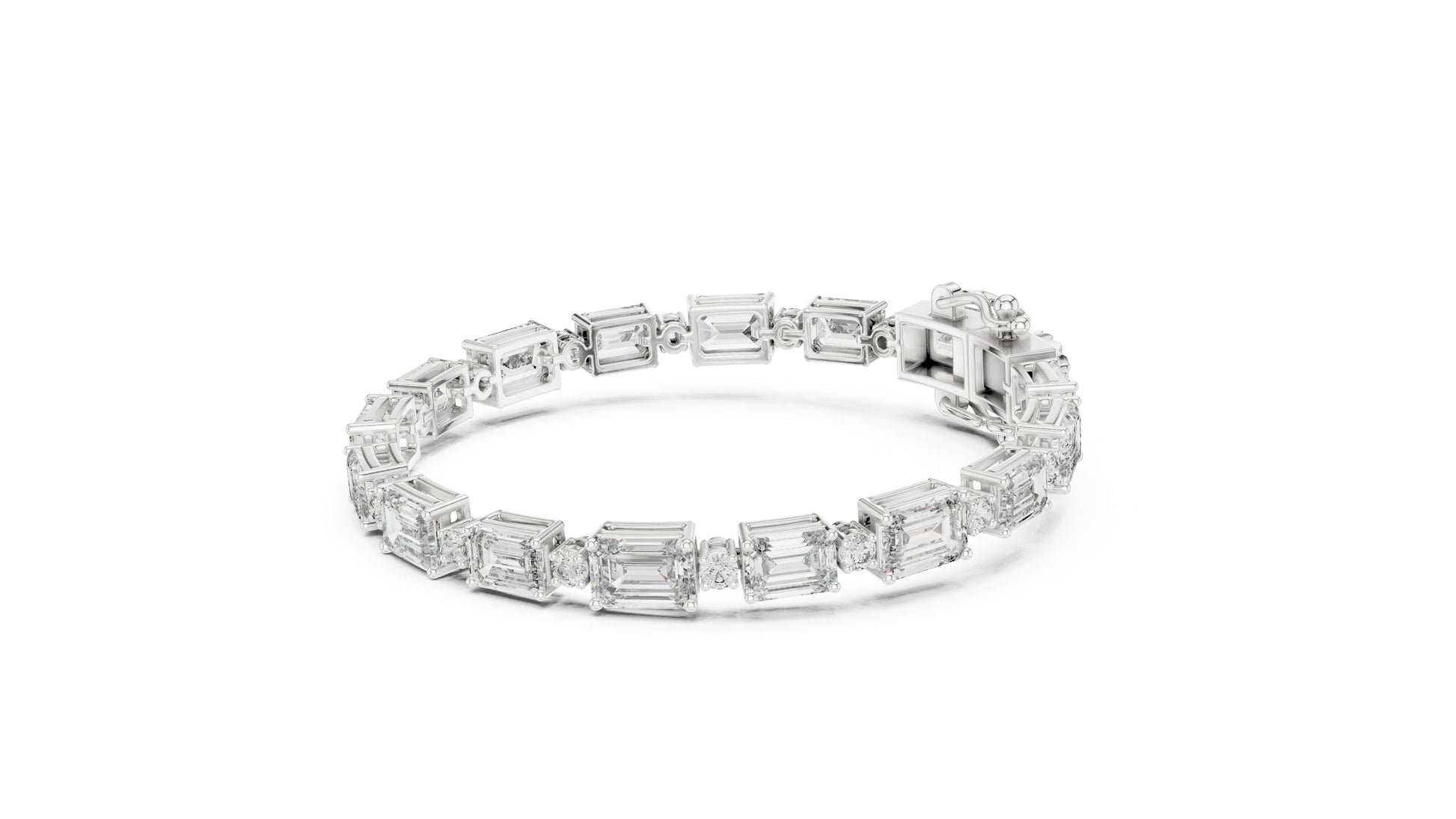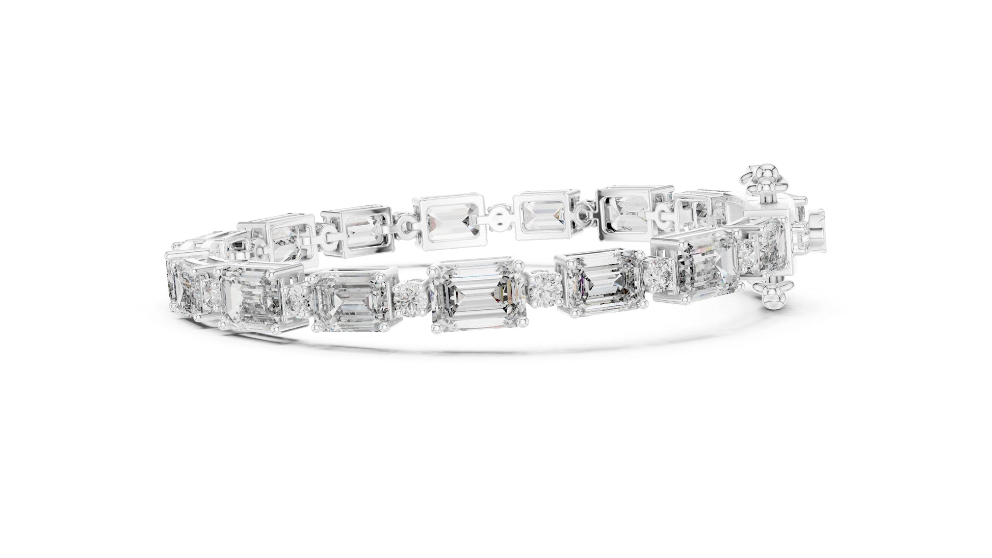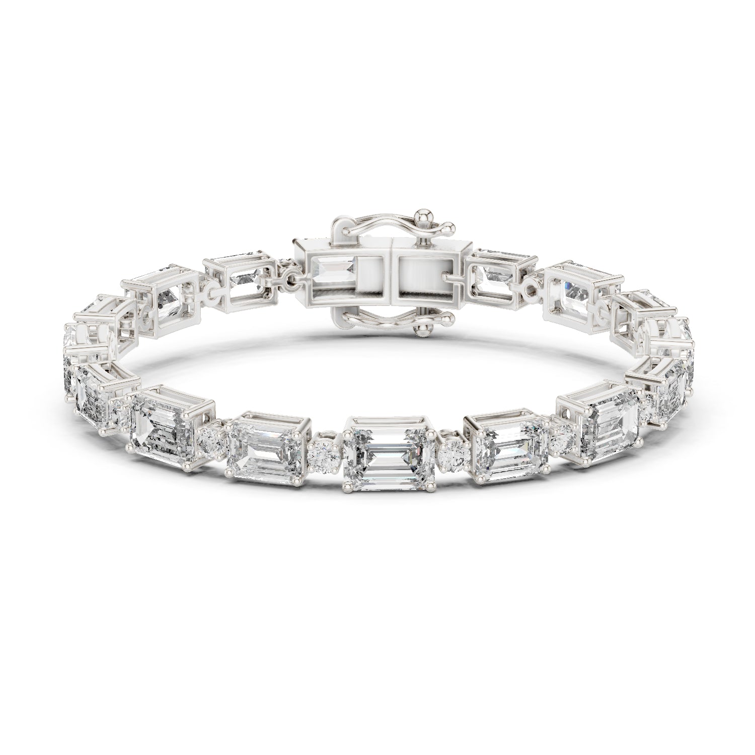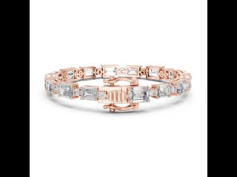 14k Rose Gold Emerald/Round Lab-Grown Diamond Engagement Bracelet | Pure Carat