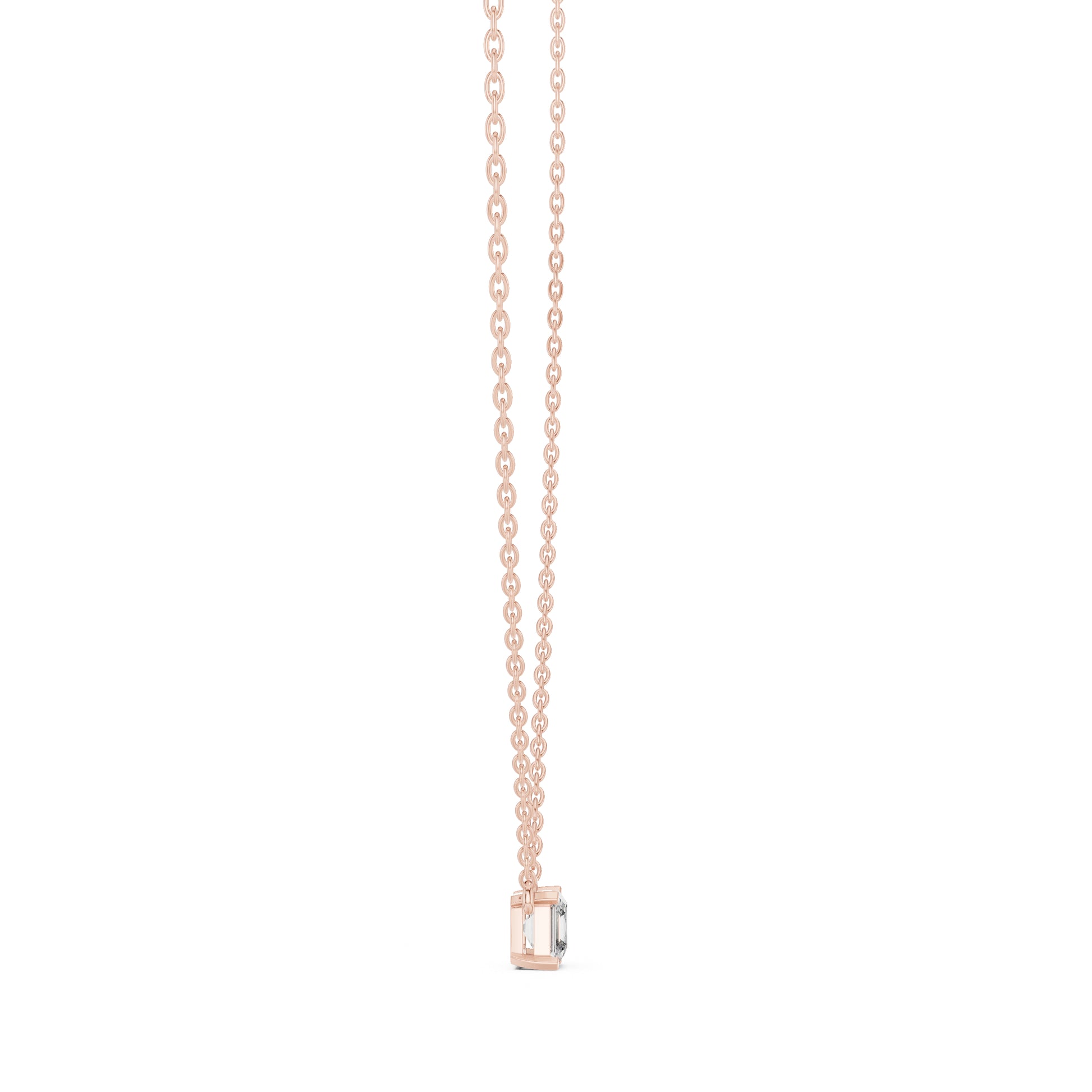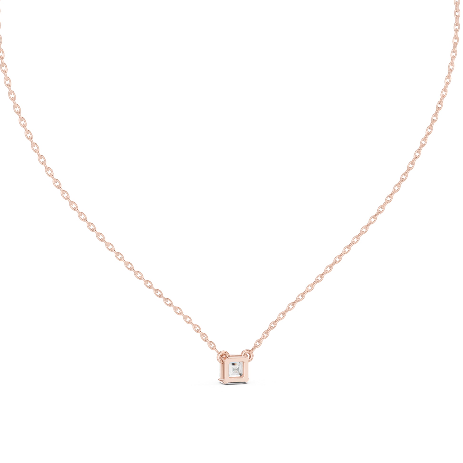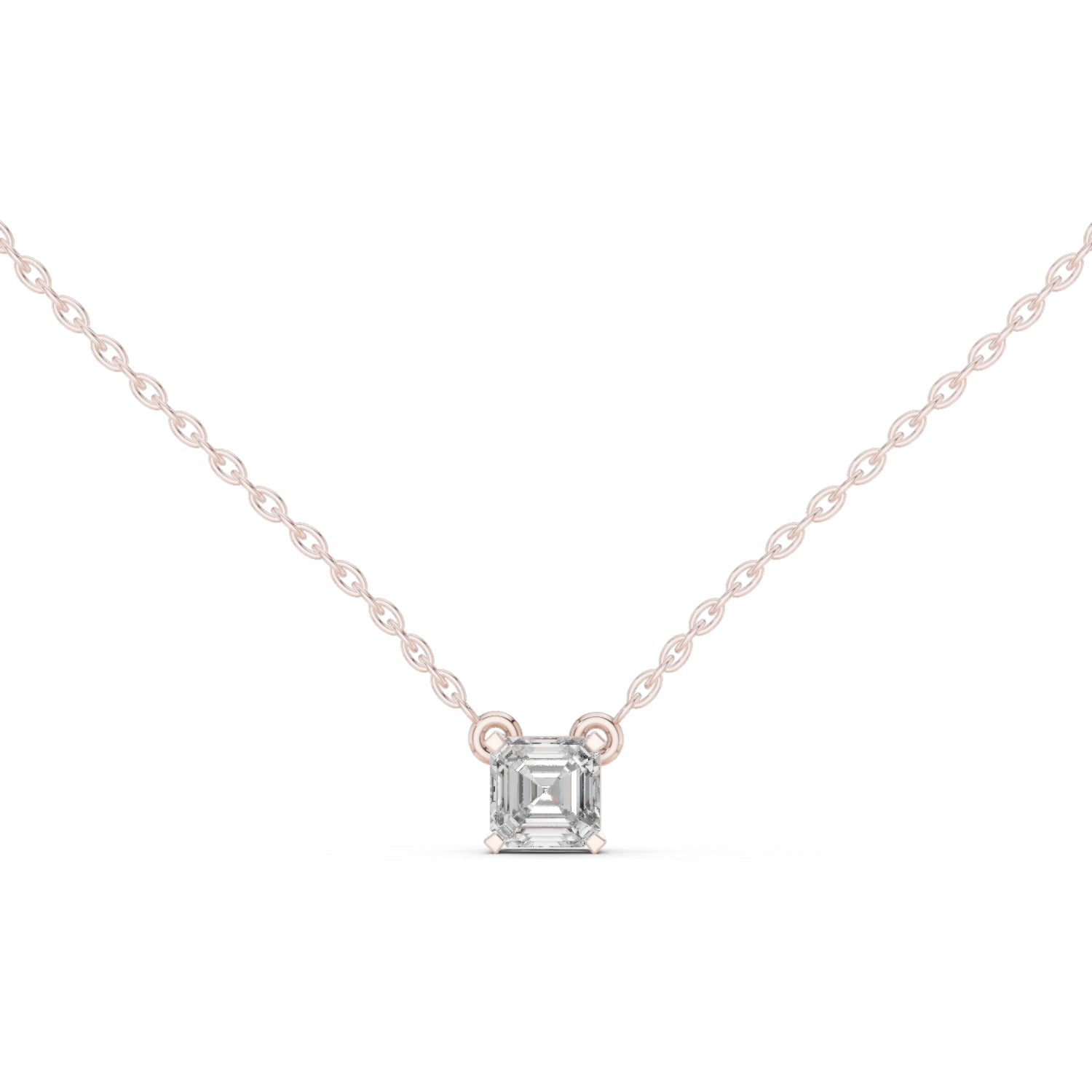 This 14K Rose Gold Emerald Square Diamond Pendant enhances wedding outfits with bold and modern sparkle.