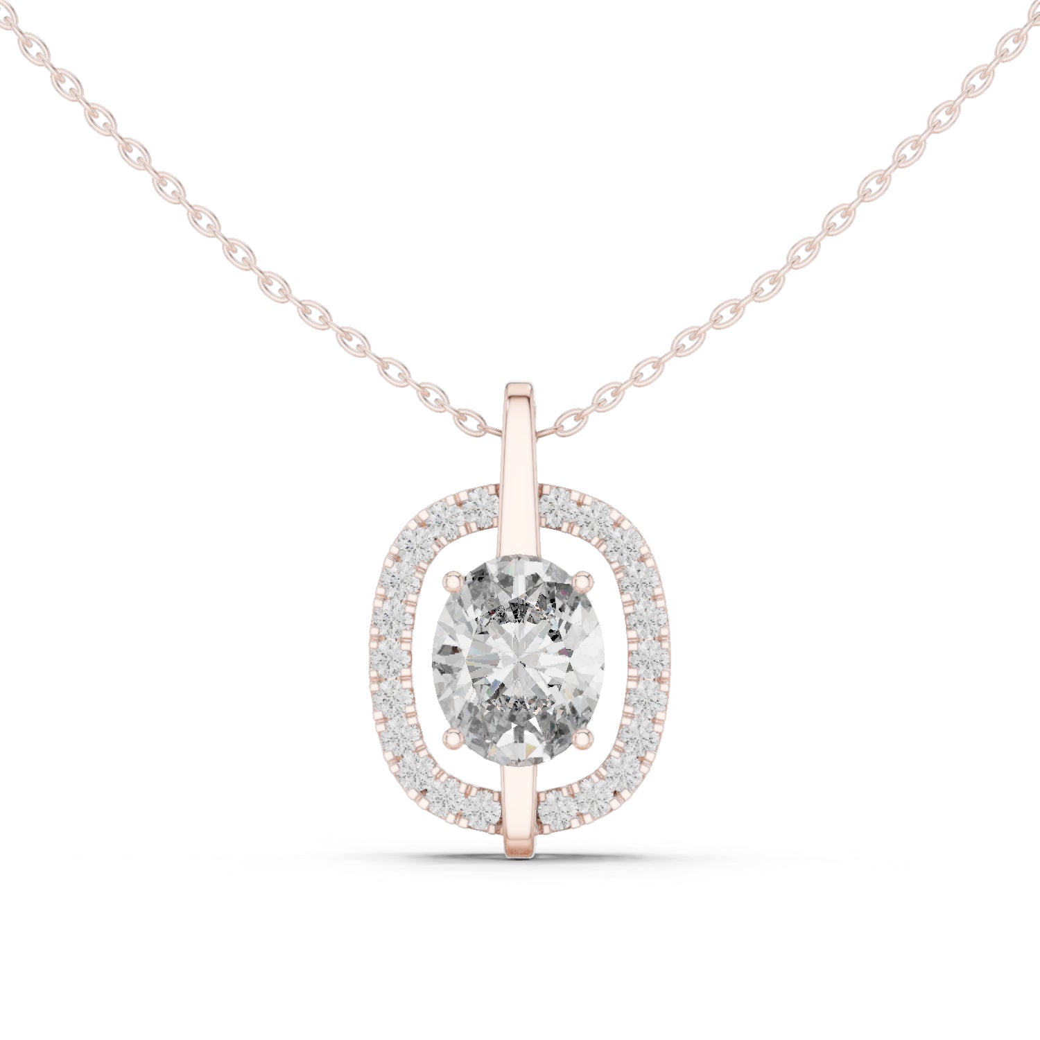 14K Rose Gold Oval & Round Lab-Grown Diamond Pendant for Women | Bridal Wear | Pure Carat