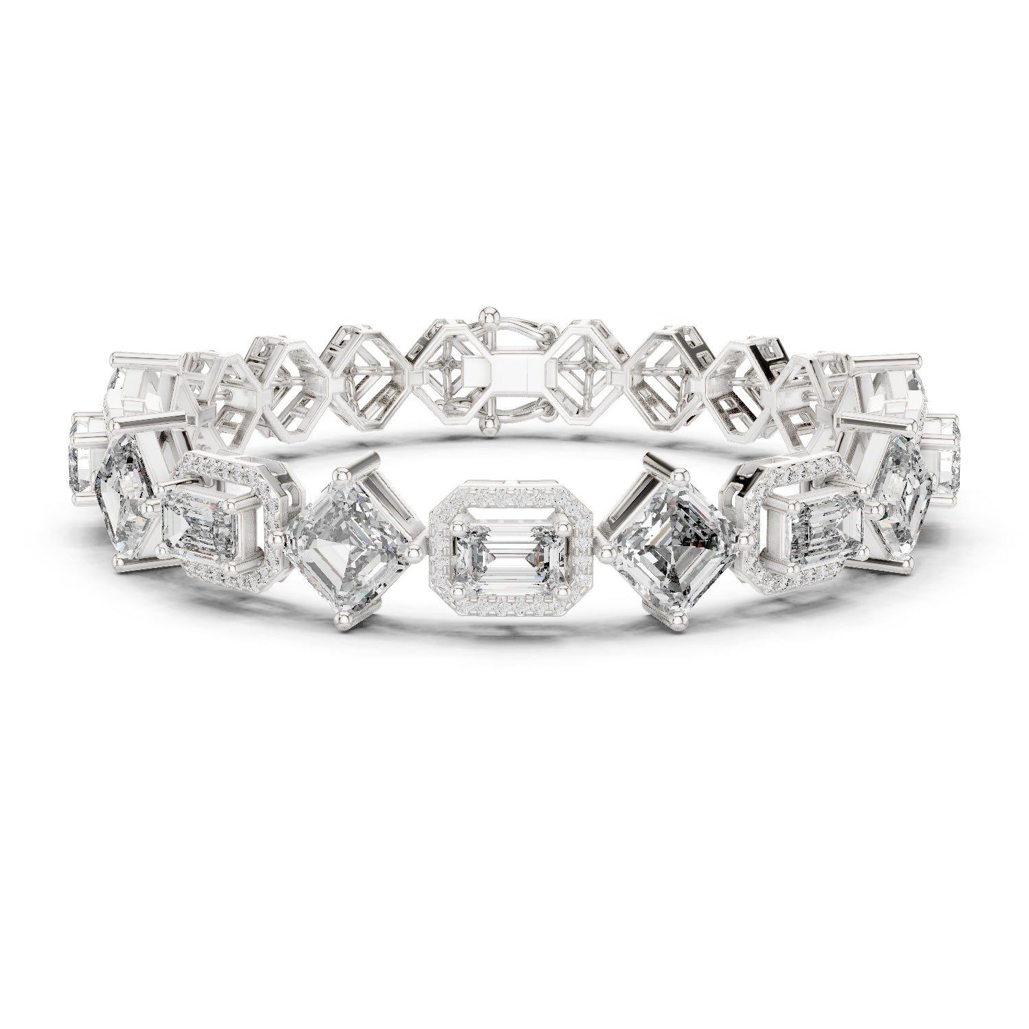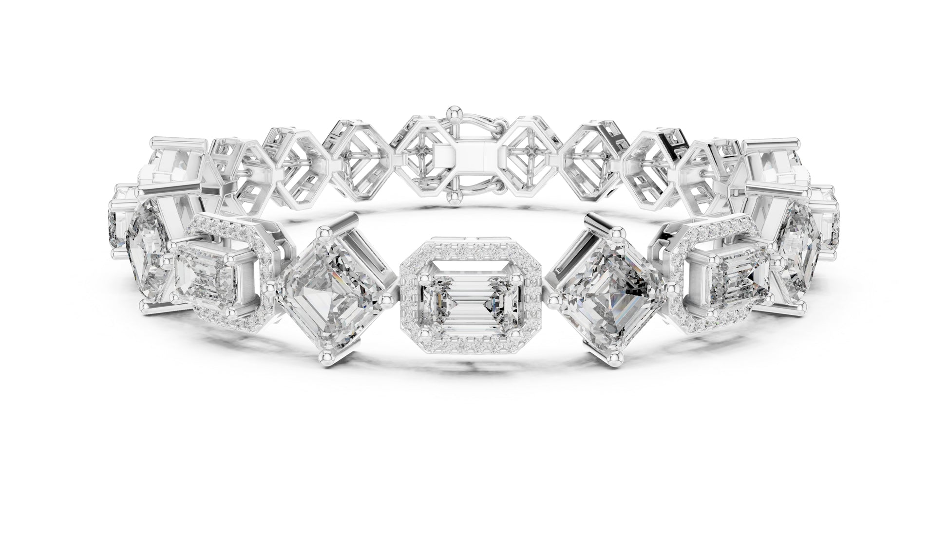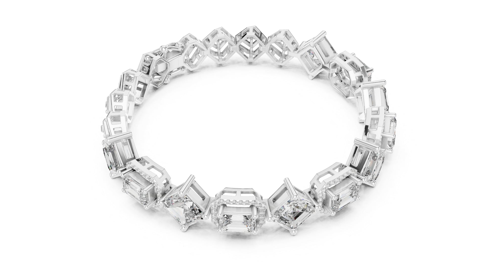14k White Gold Emerald/Emerald/Round Lab-Grown Diamond Bridal Bracelet for Women | Pure Carat