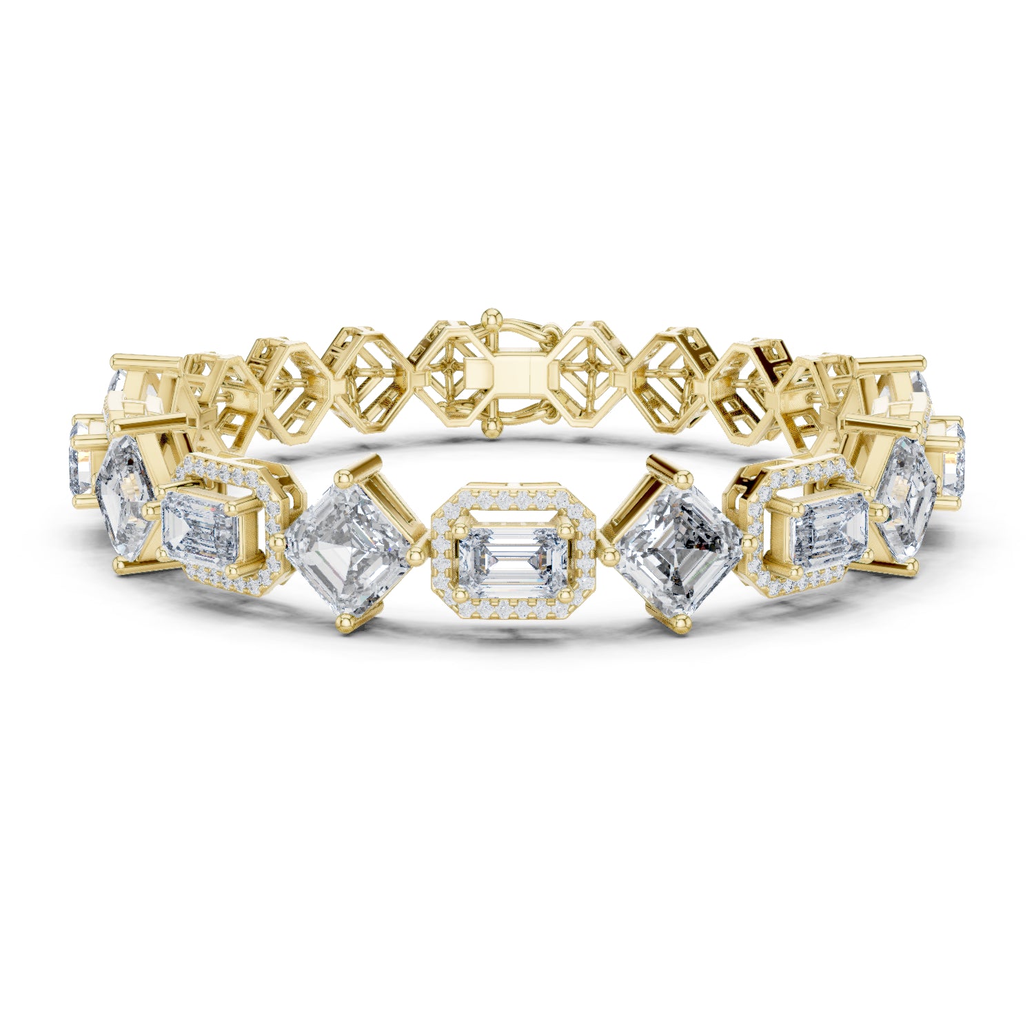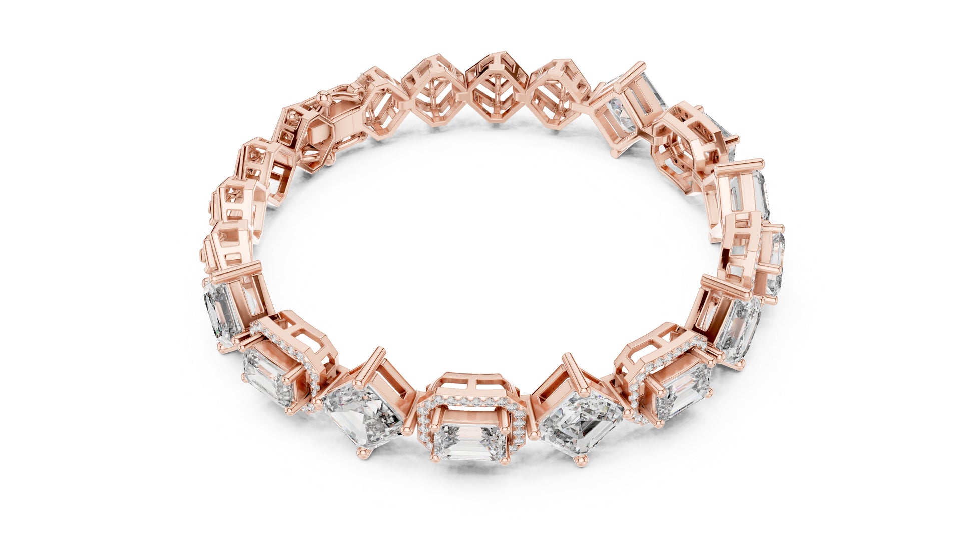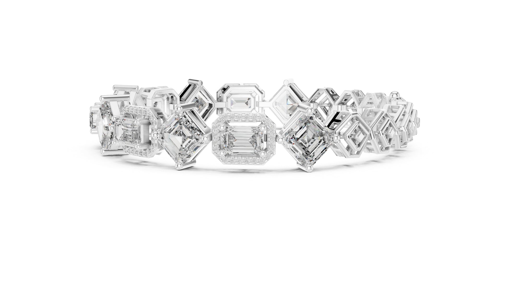 14k White Gold Emerald/Emerald/Round Lab-Grown Diamond Bridal Bracelet for Women | Pure Carat