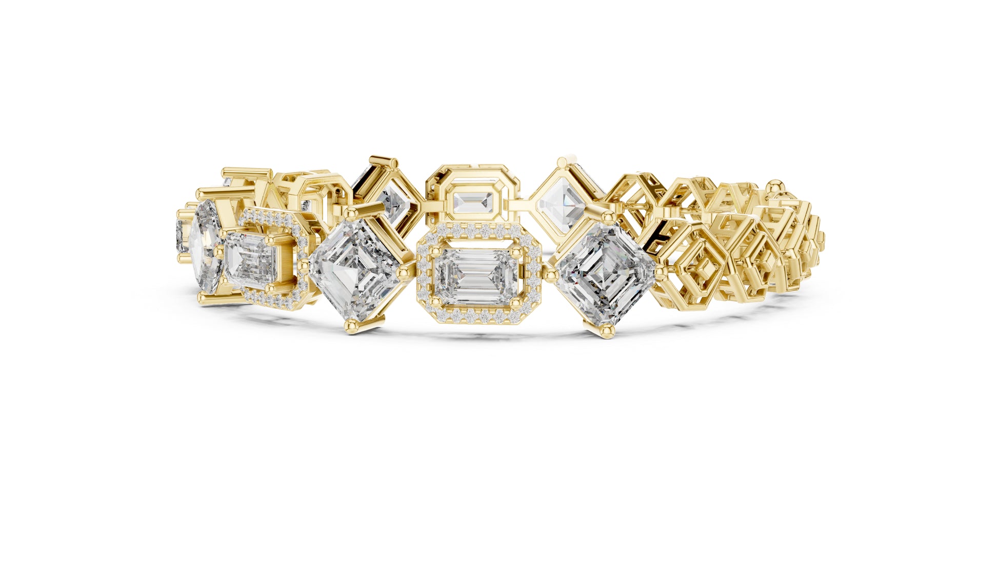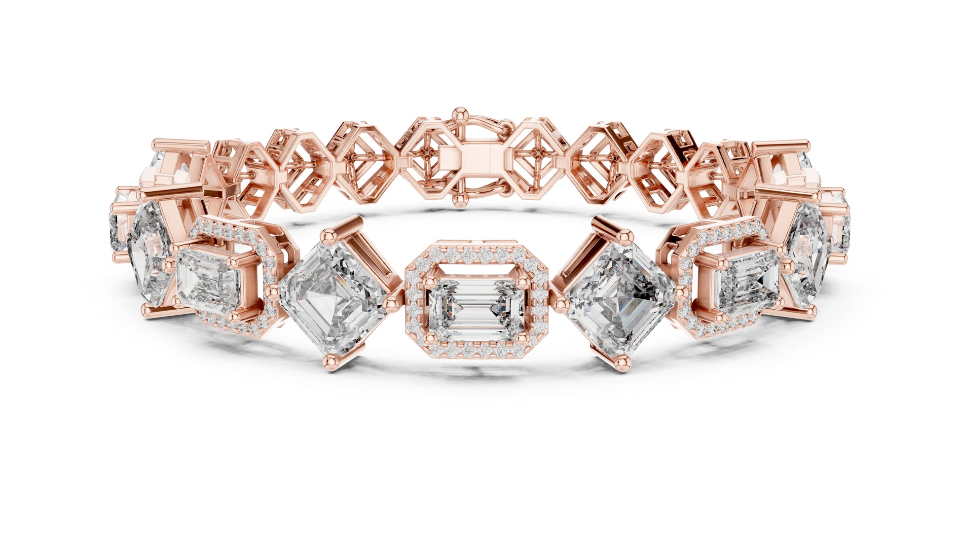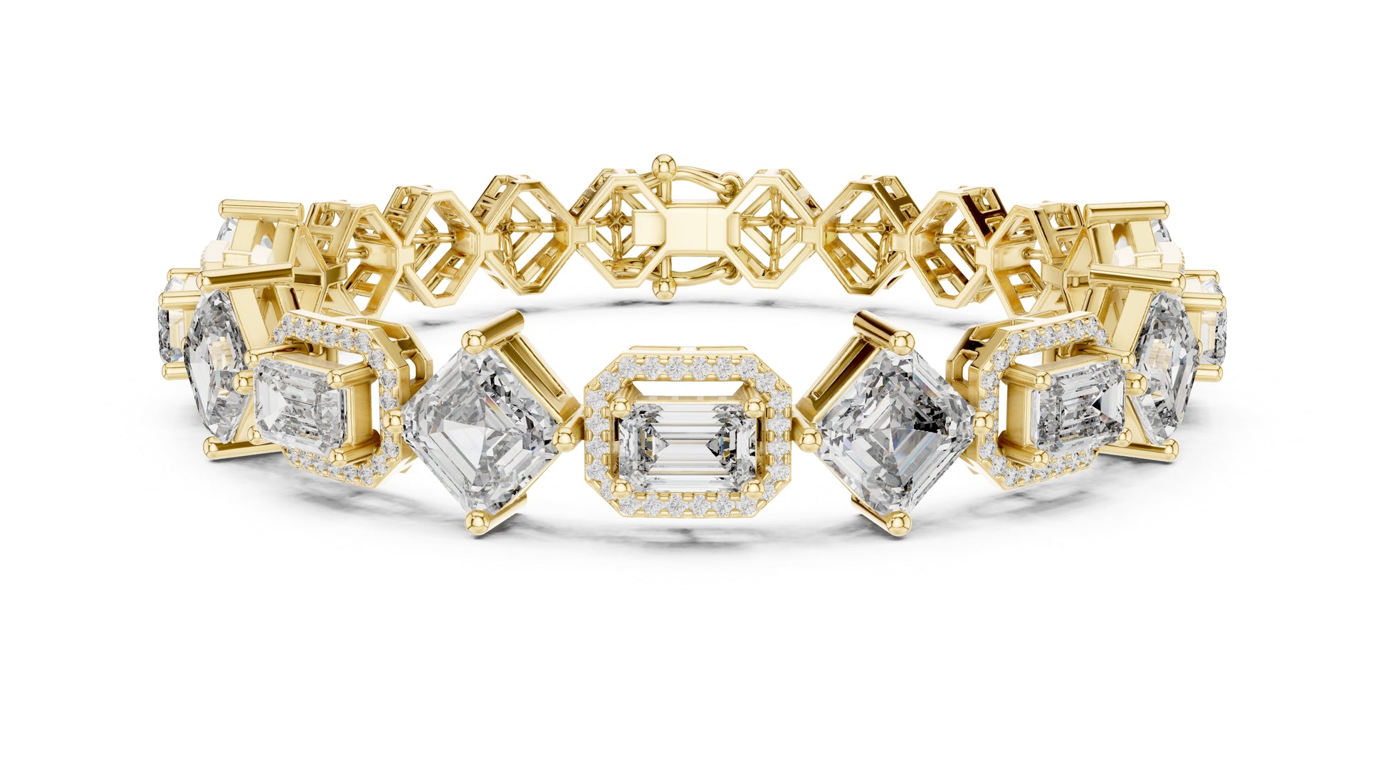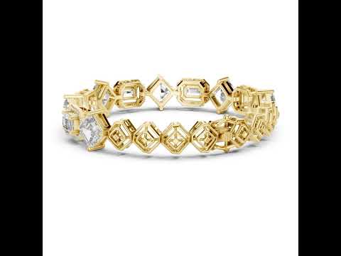 This 14K White Gold Bridal Bracelet features double Emerald-cut and one Round lab-grown diamond, creating a rich, elegant sparkle perfect for bridal celebrations.