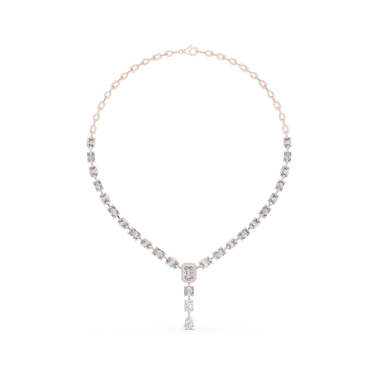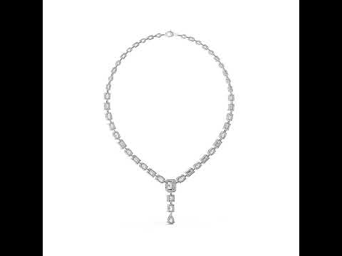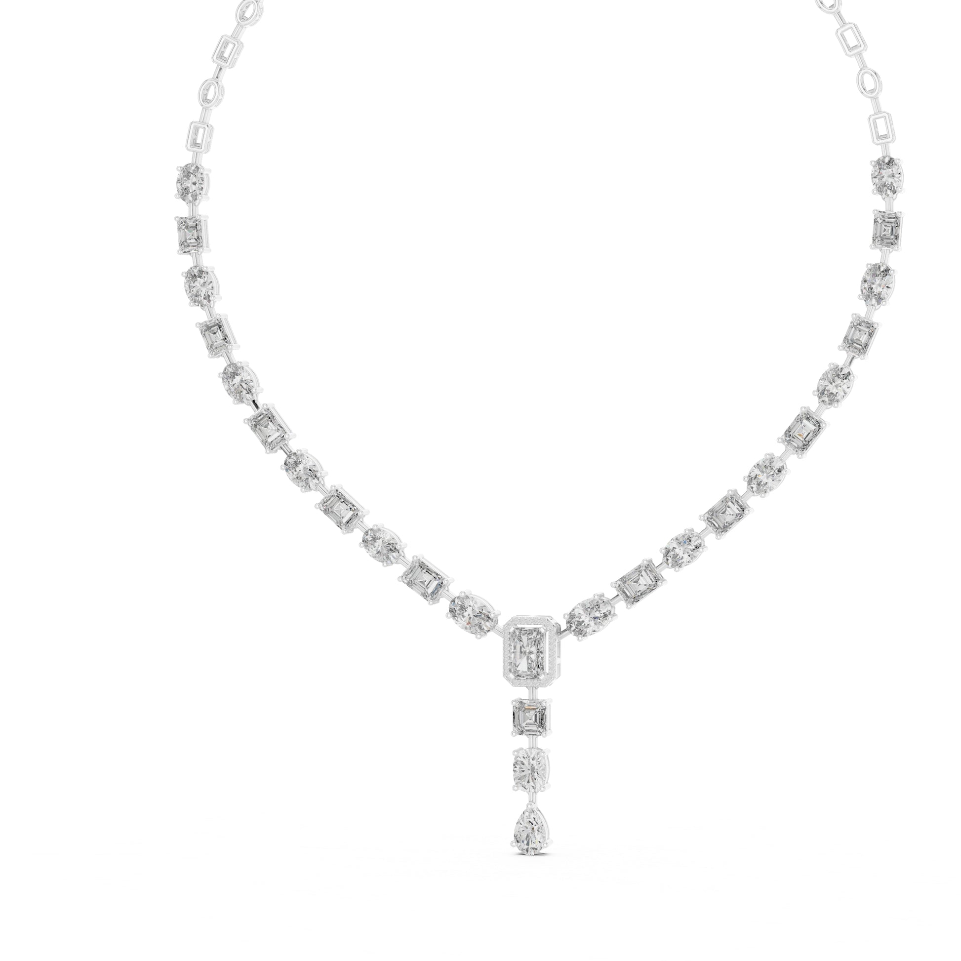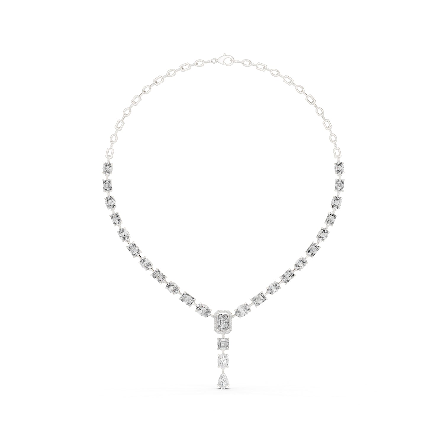 This 14K White Gold Engagement Necklace features Radiant, Emerald, Cushion, and Pear cut diamonds for a luxurious multi-shape sparkle perfect for engagement ceremonies.