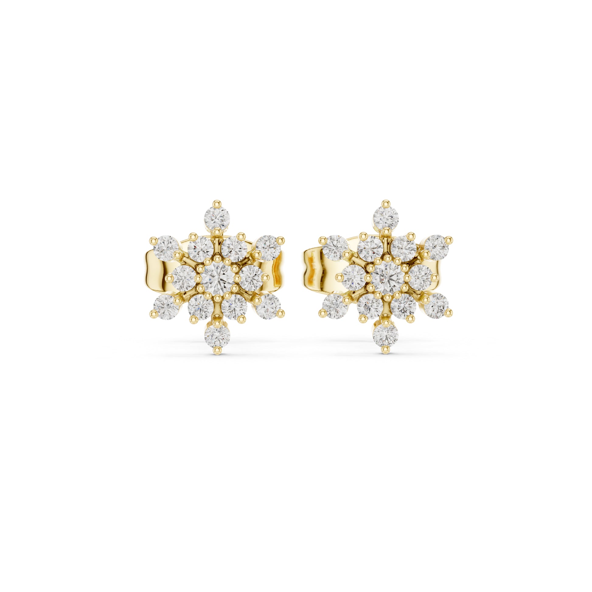 14K Gold Teardrop Diamond Cluster Stud Earrings - Contemporary Design