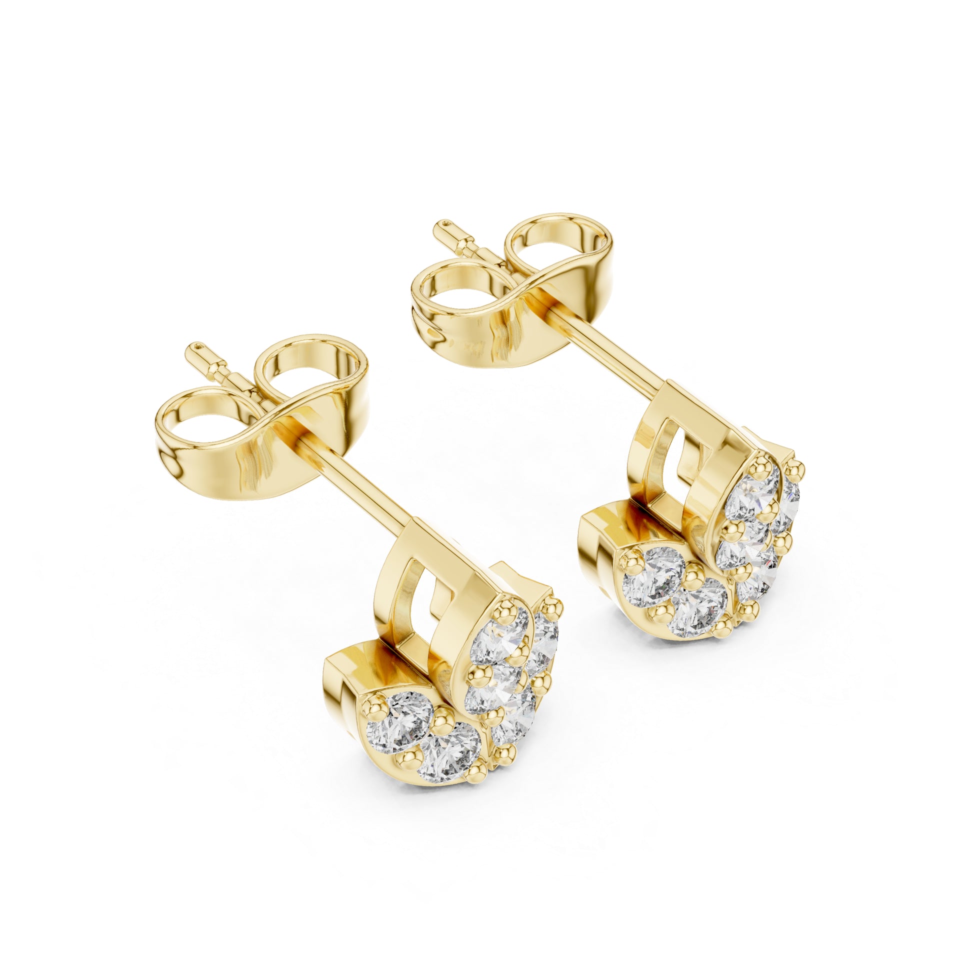 14K Gold Teardrop Diamond Cluster Stud Earrings - Contemporary Design