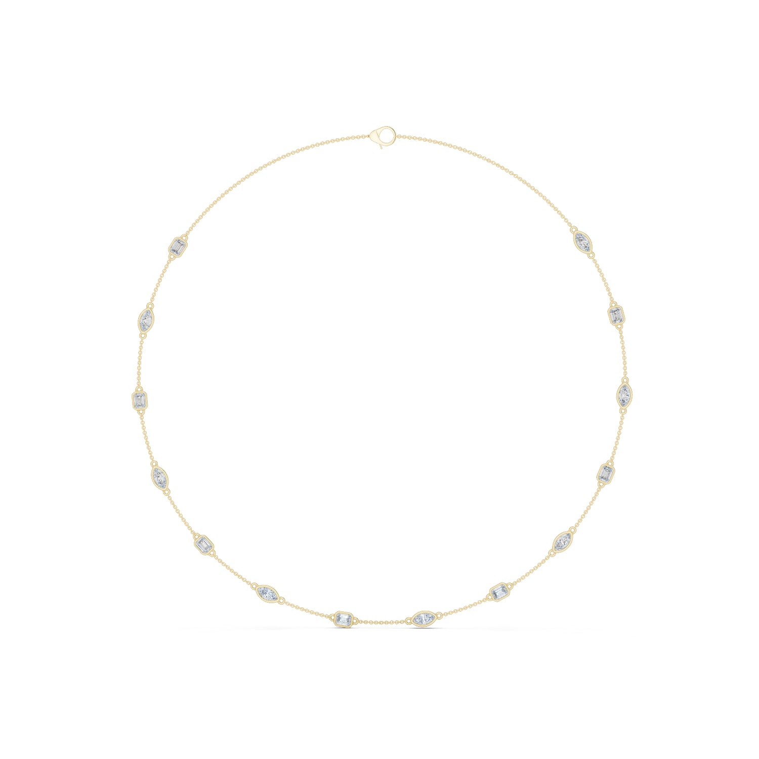 This 14K Yellow Gold Office Wear Necklace features Emerald and Marquise cut diamonds arranged for a sleek, refined professional look.
