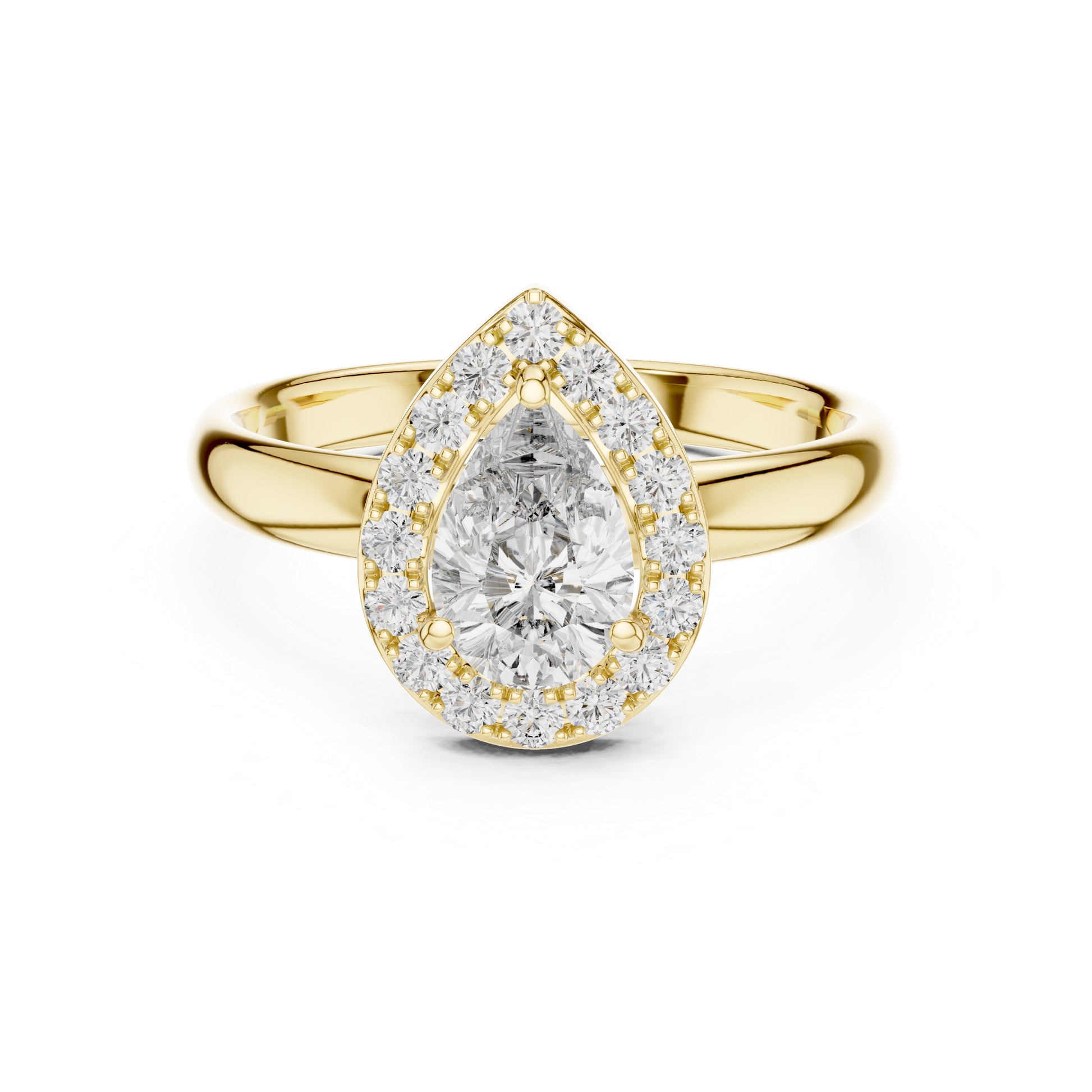 This Pure Carat Wedding Ring features Pear & Round lab-grown diamonds set in radiant 14K Yellow Gold. A perfect blend of luxury, beauty, and bridal elegance.