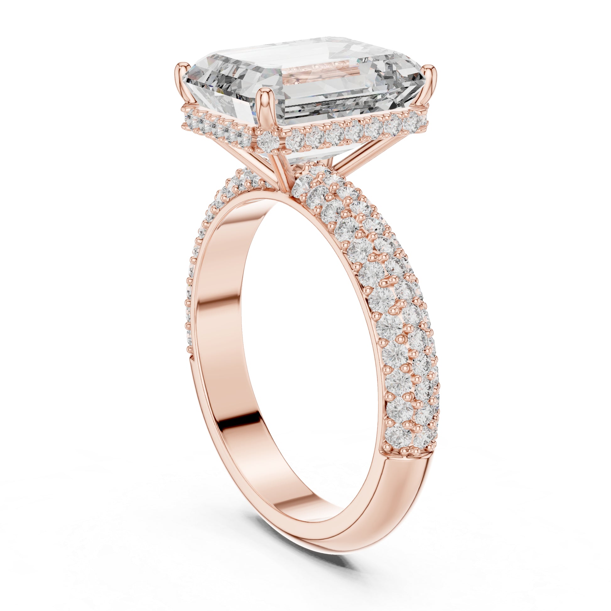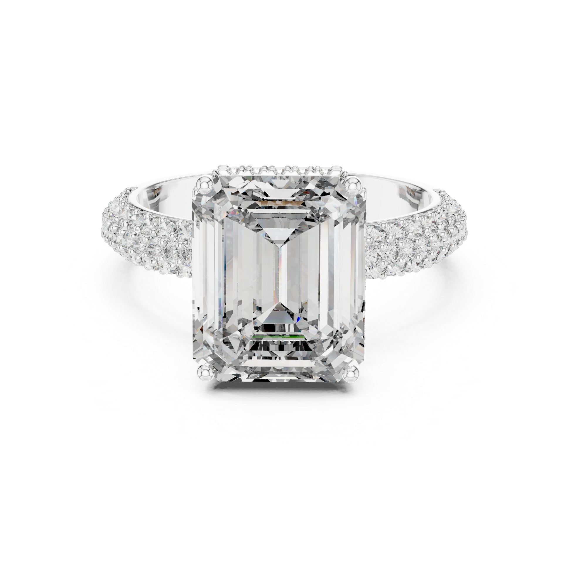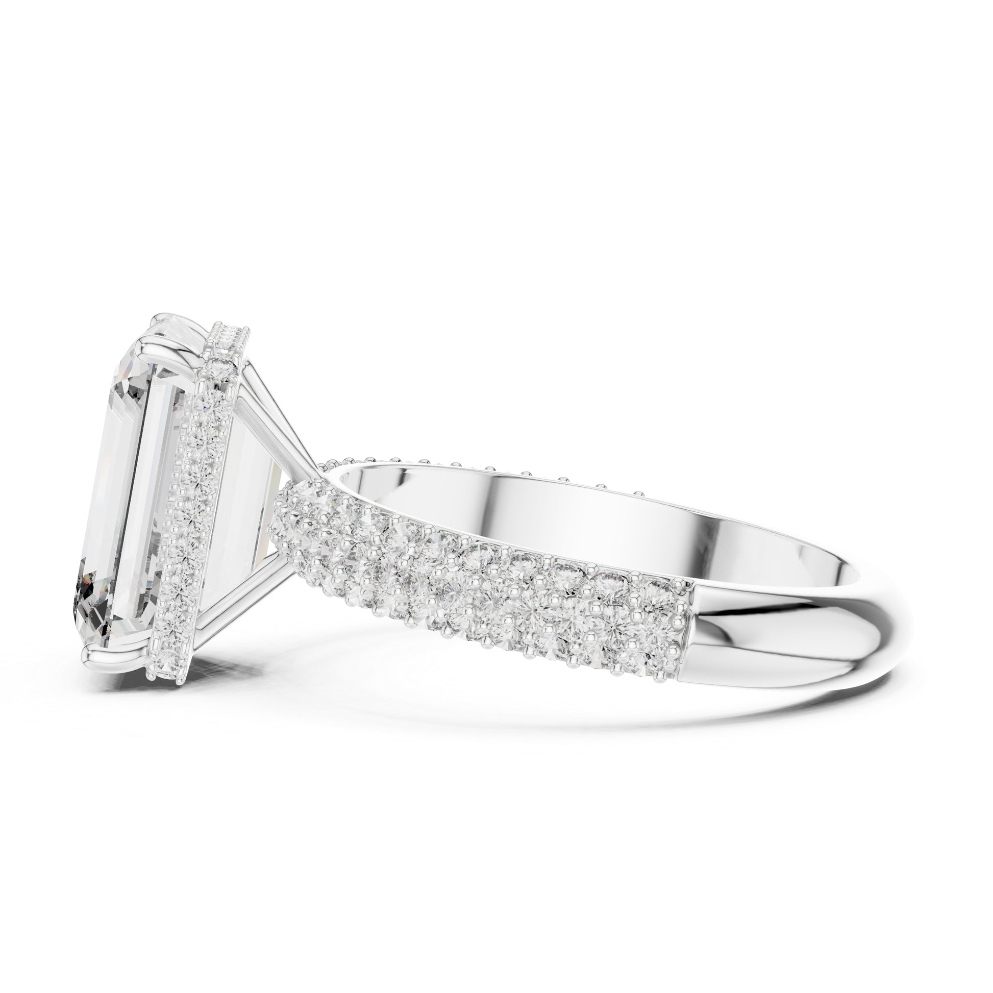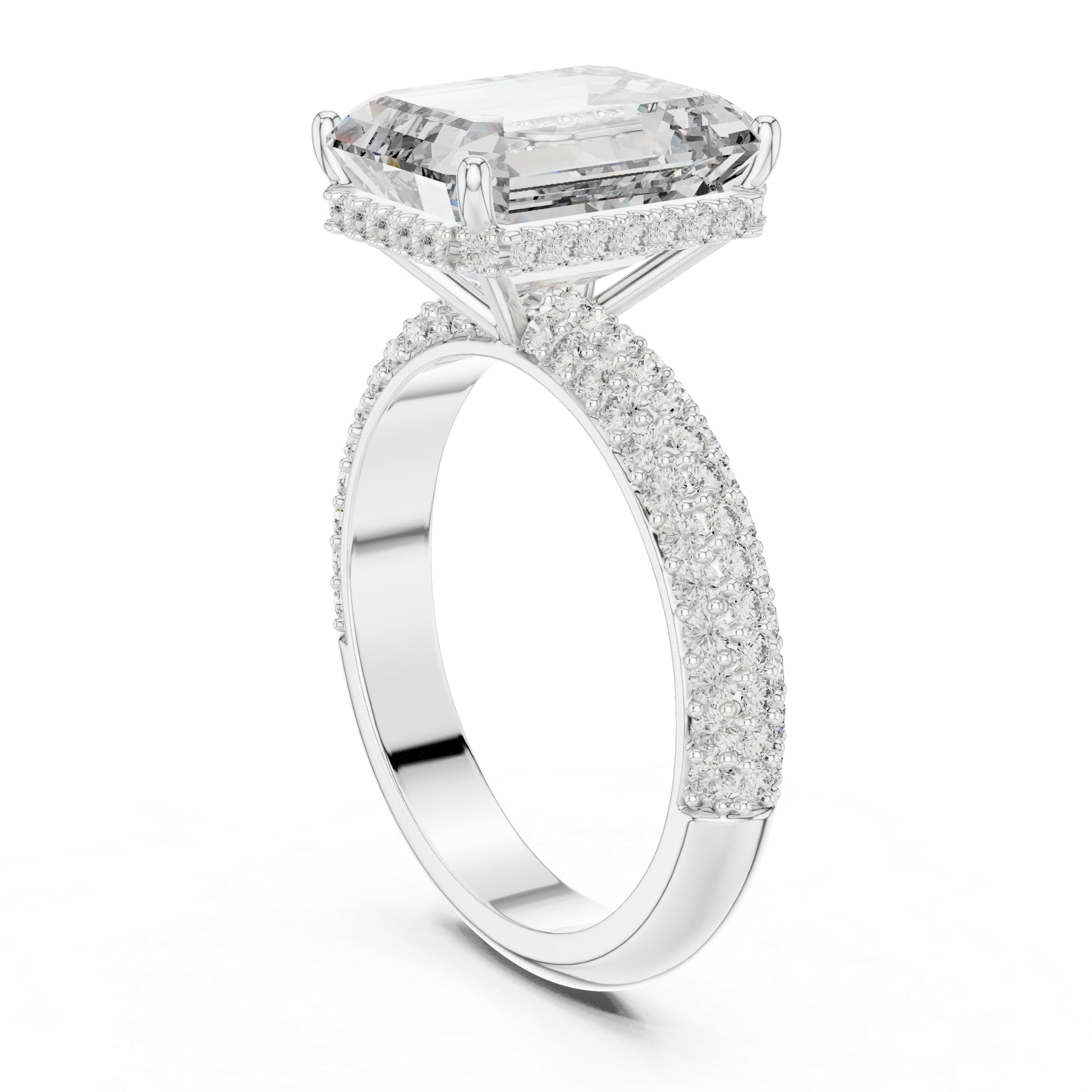 Round + emerald diamonds create depth and elegance.