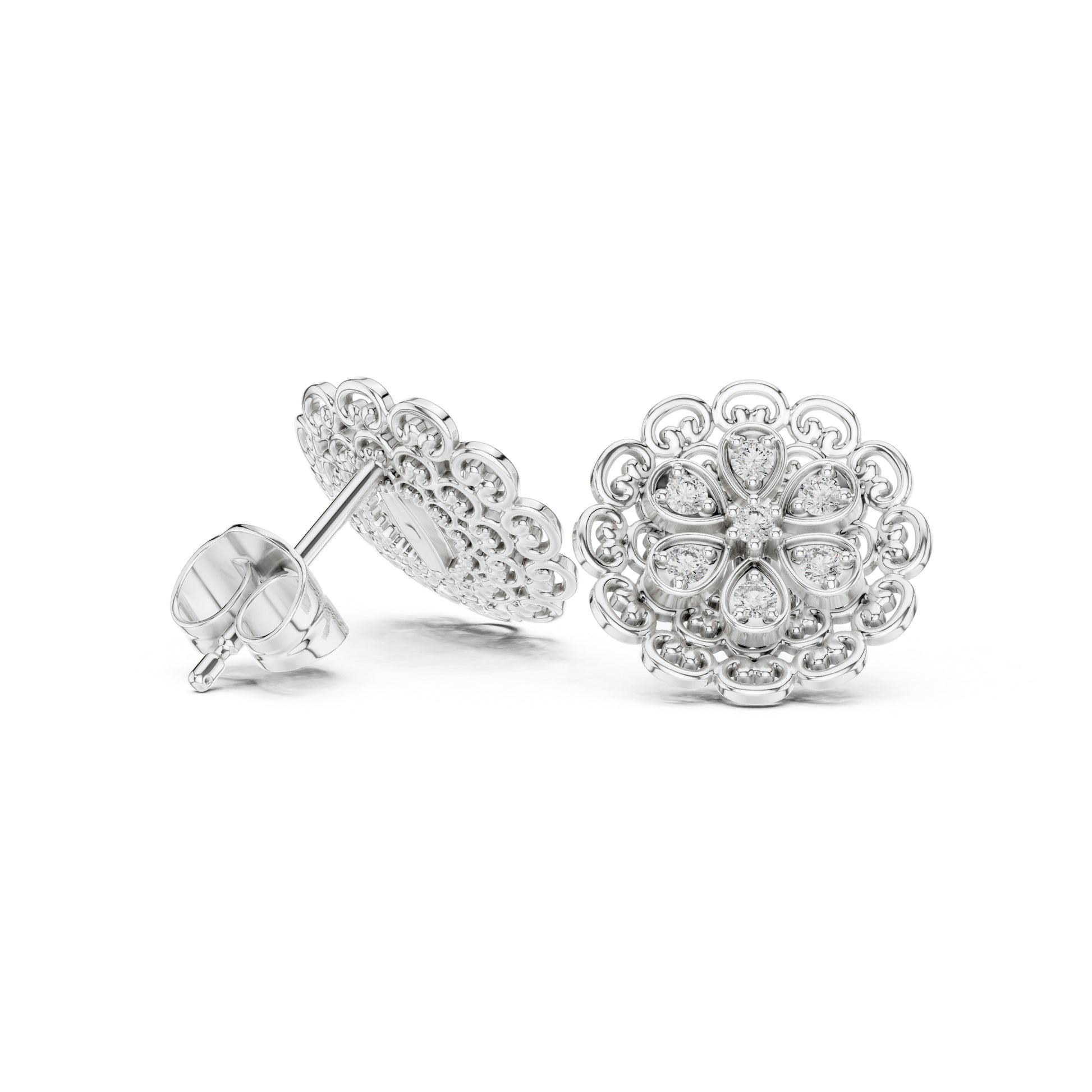 14K Gold Teardrop Diamond Cluster Stud Earrings - Contemporary Design