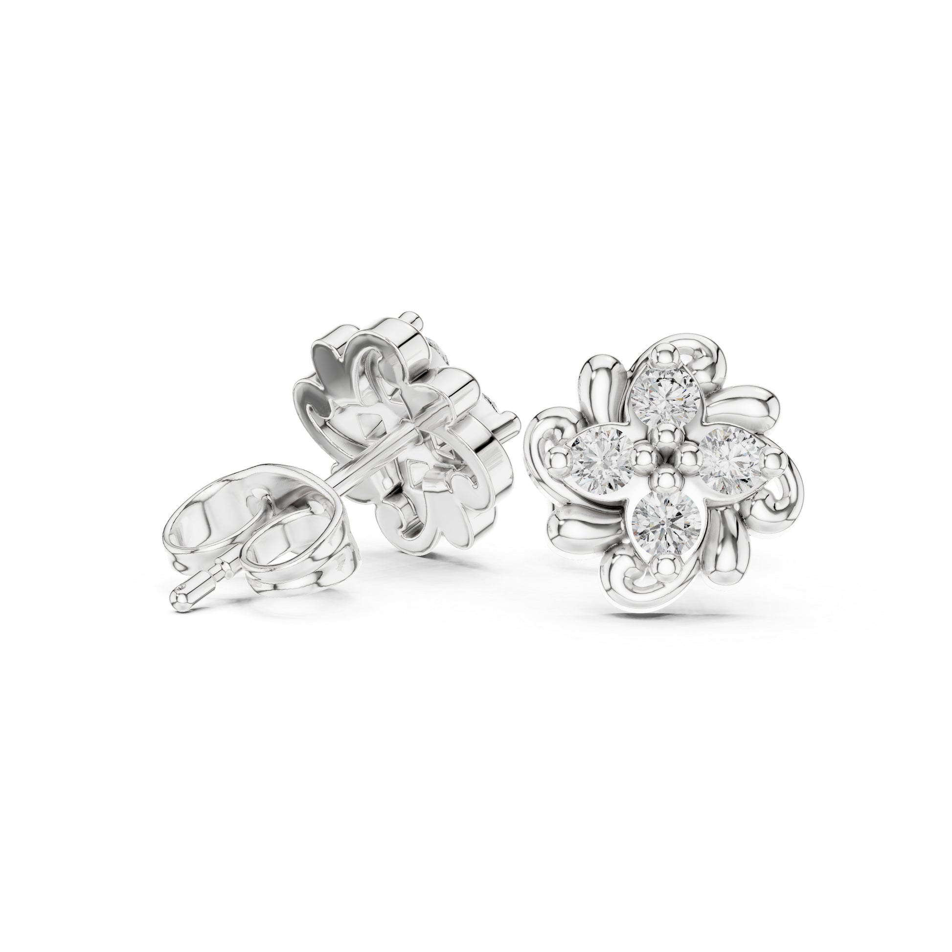 14K Gold Teardrop Diamond Cluster Stud Earrings - Contemporary Design