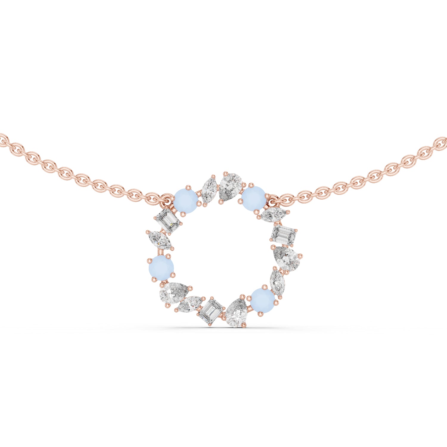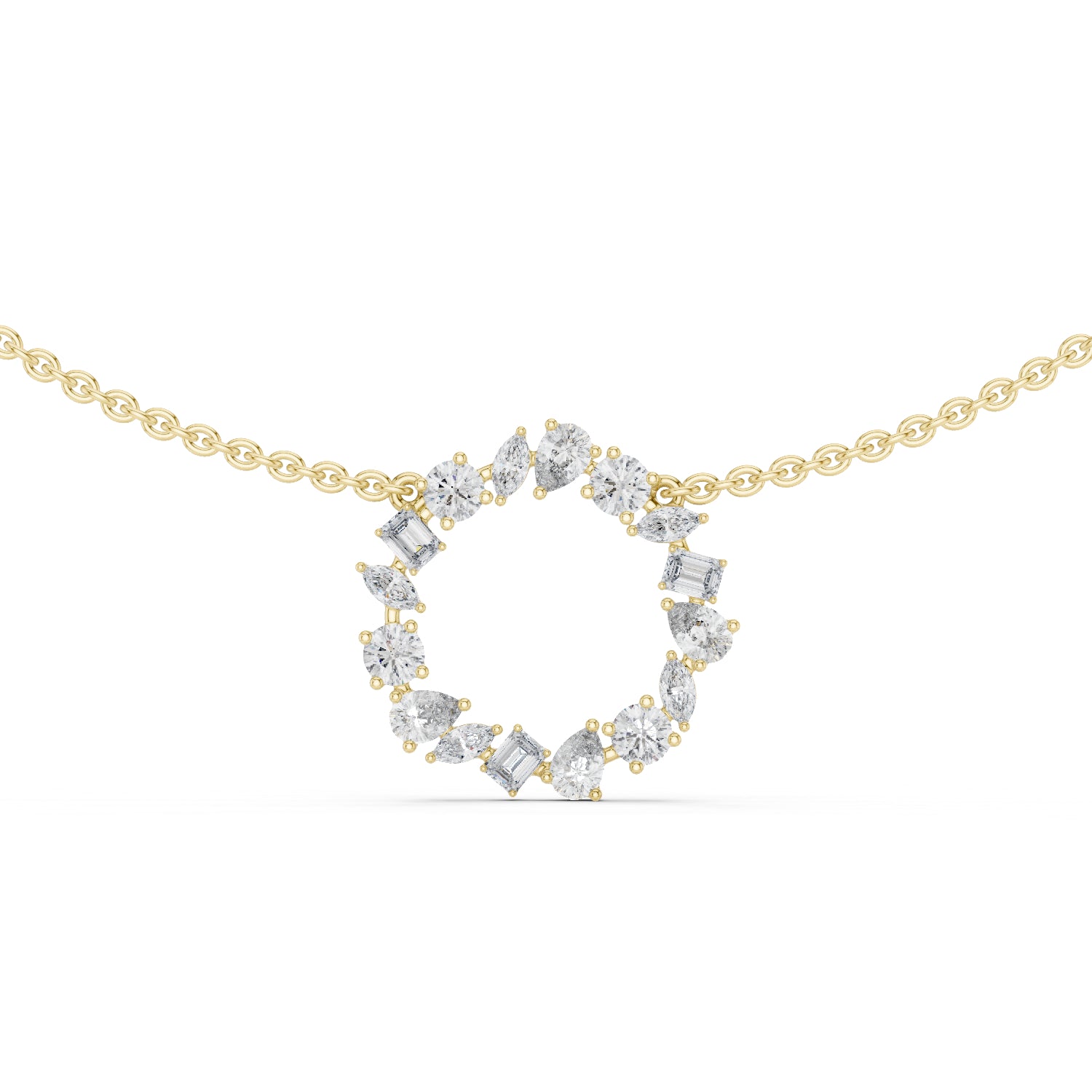 This 18K Rose Gold Engagement Pendant features Marquise, Pear, Emerald, and Round diamonds delivering luxurious multi-shape brilliance for engagement gifting.