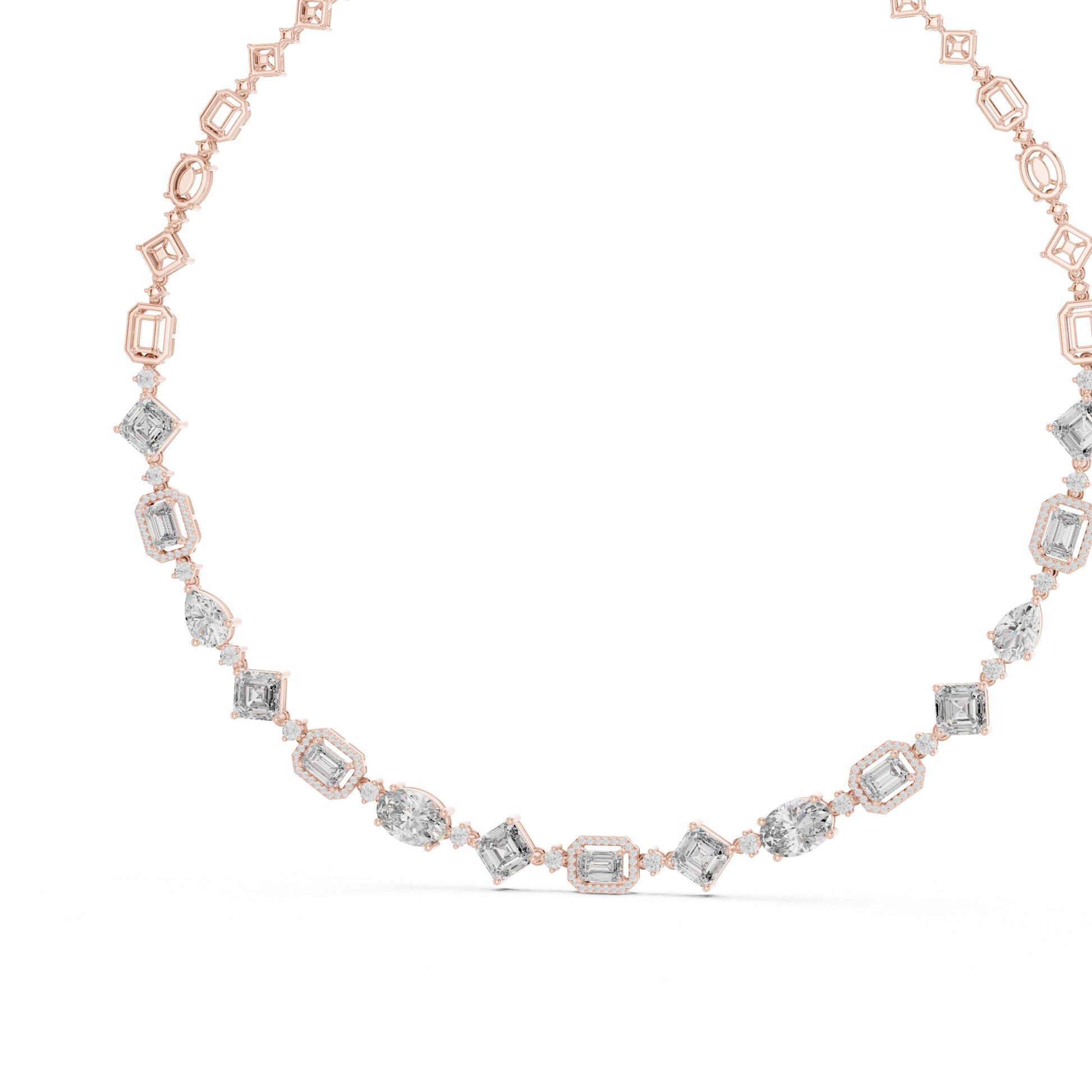 18k Rose Gold Pear/Emerald/Oval/Round Lab-Grown Diamond Party Wear Necklace | Pure Carat