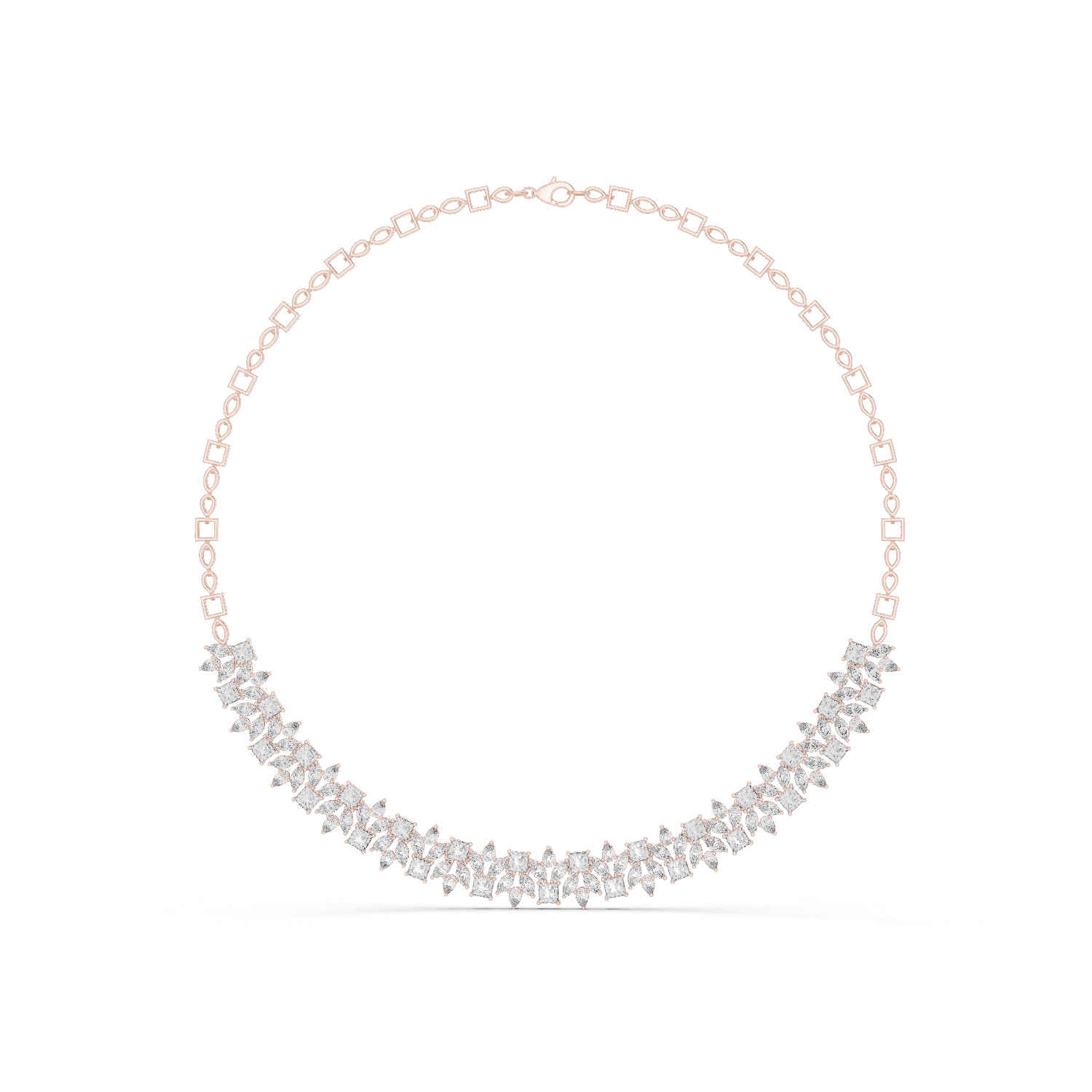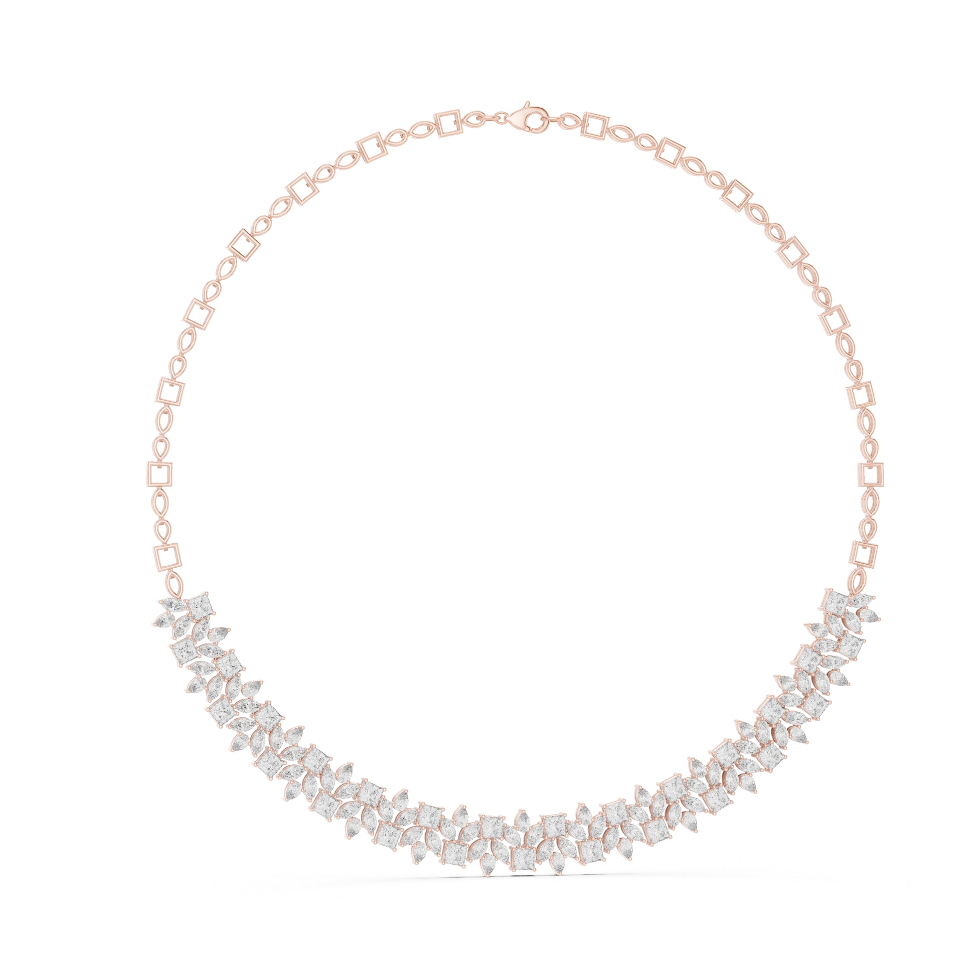 This 18K Rose Gold Anniversary Necklace features Pear, Princess, and Marquise lab-grown diamonds—perfect for celebrating love with elegance and brilliance.