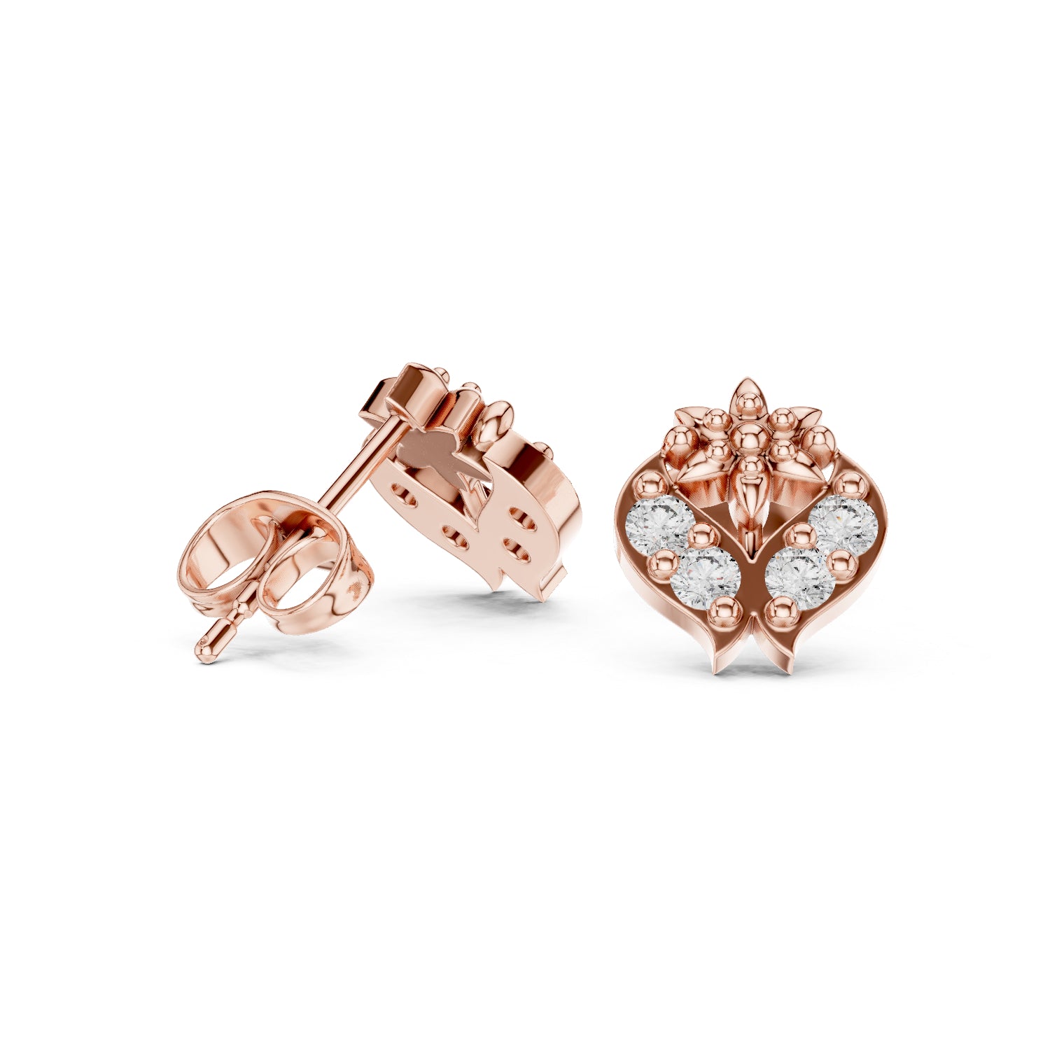 These 18K rose gold earrings offer warm, soft brilliance suitable for everyday luxury wear.