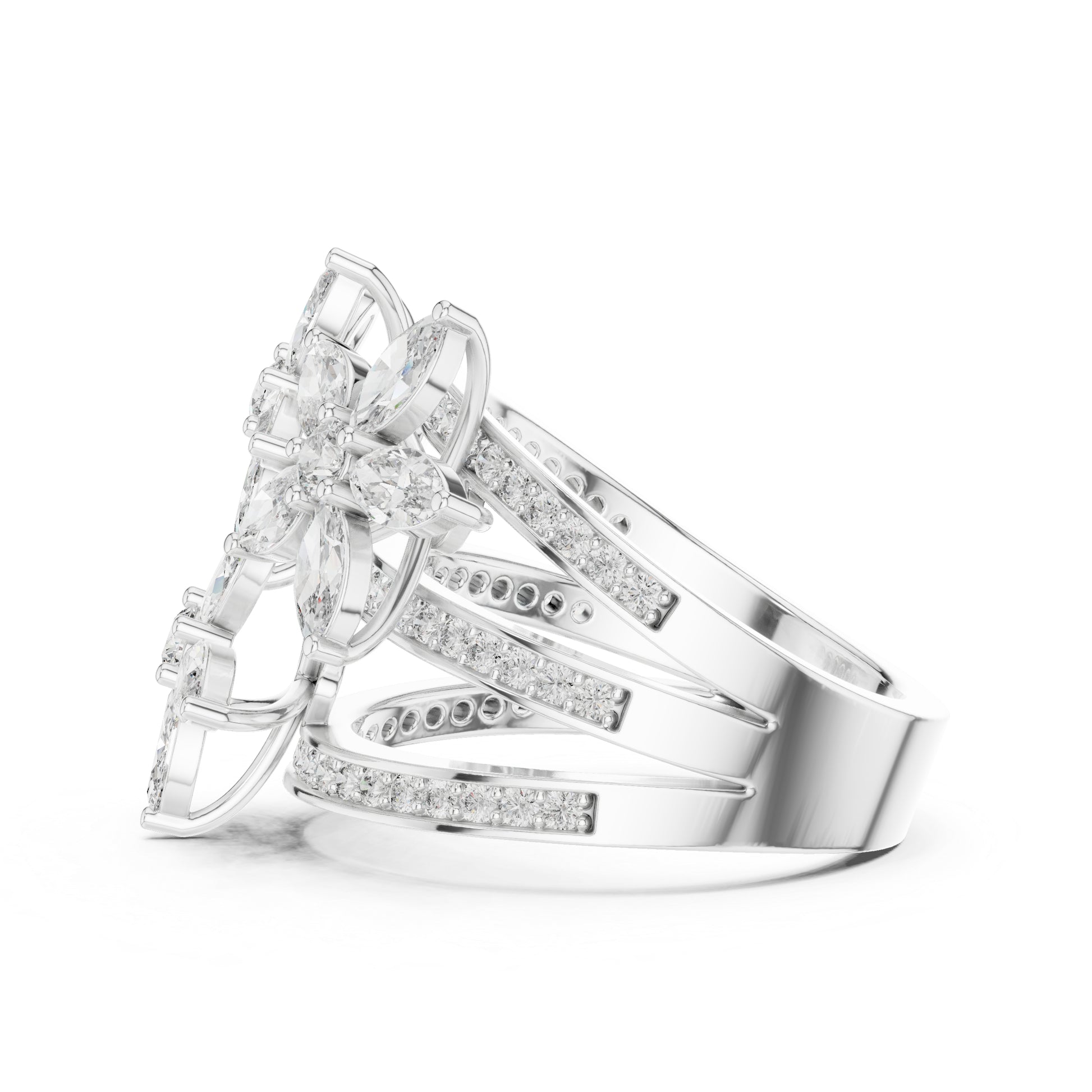 Round + marquise diamonds offer graceful brilliance.