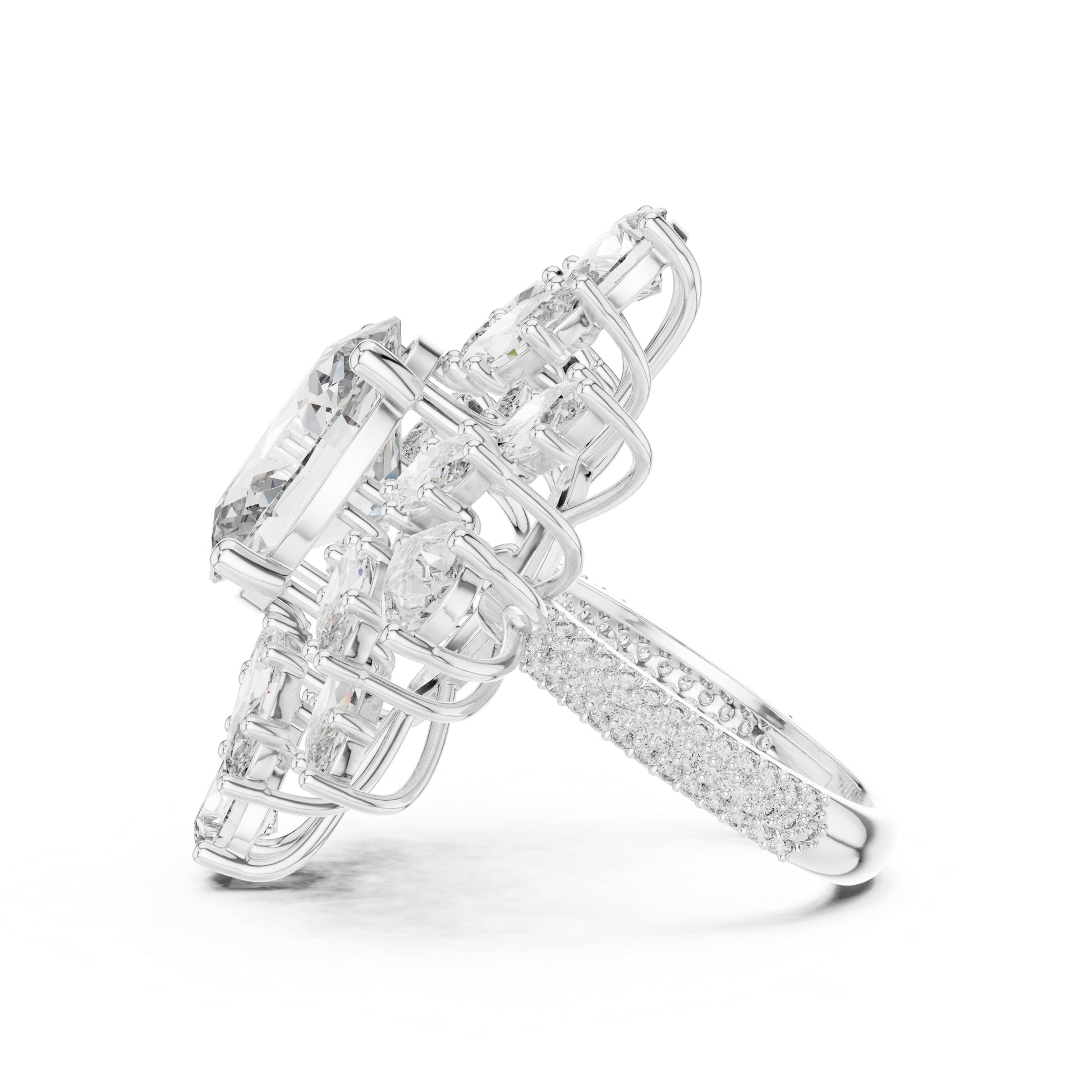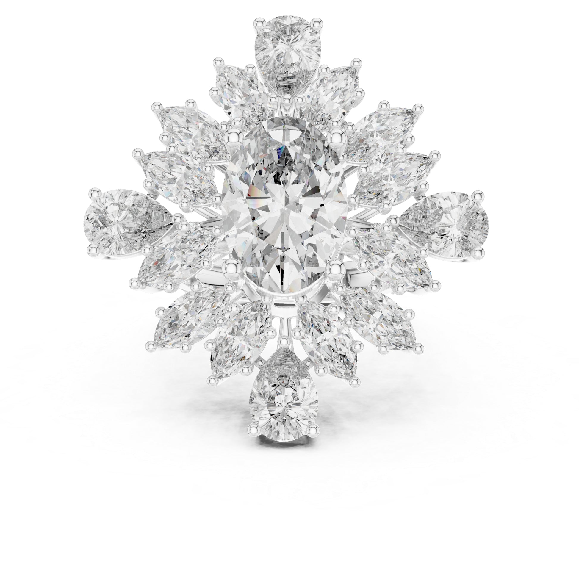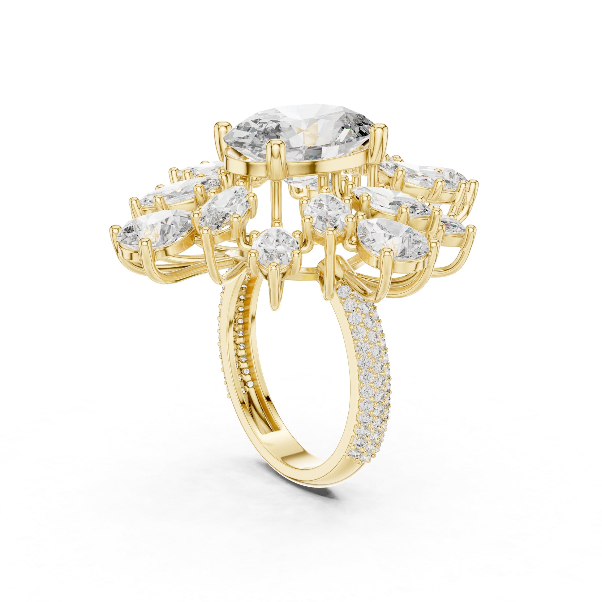 This 18K rose gold everyday wear ring showcases round, marquise, pear, and oval lab-grown diamonds arranged for multi-directional sparkle and elegant daily styling.