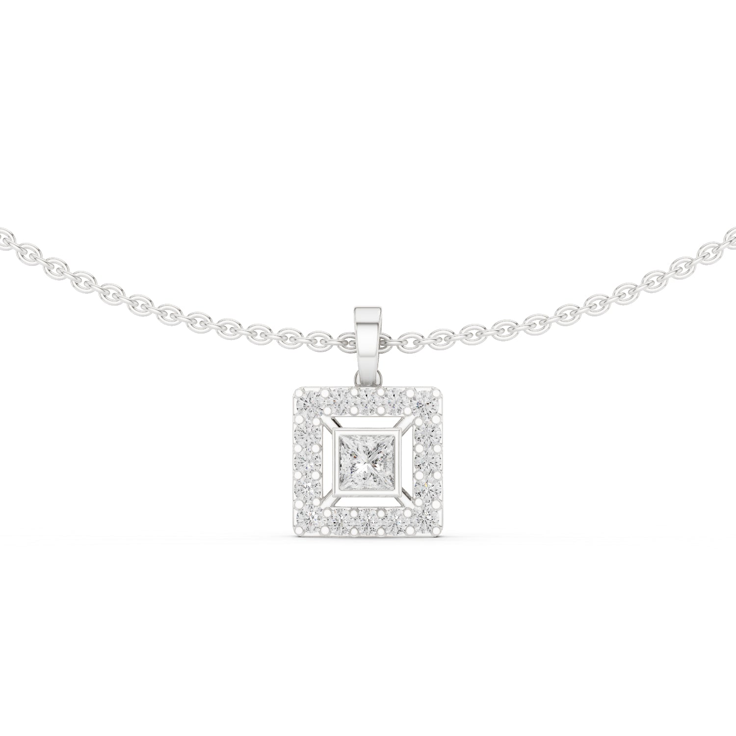 18k White Gold Princess/Round Lab-Grown Diamond Party Wear Pendant for Women | Pure Carat