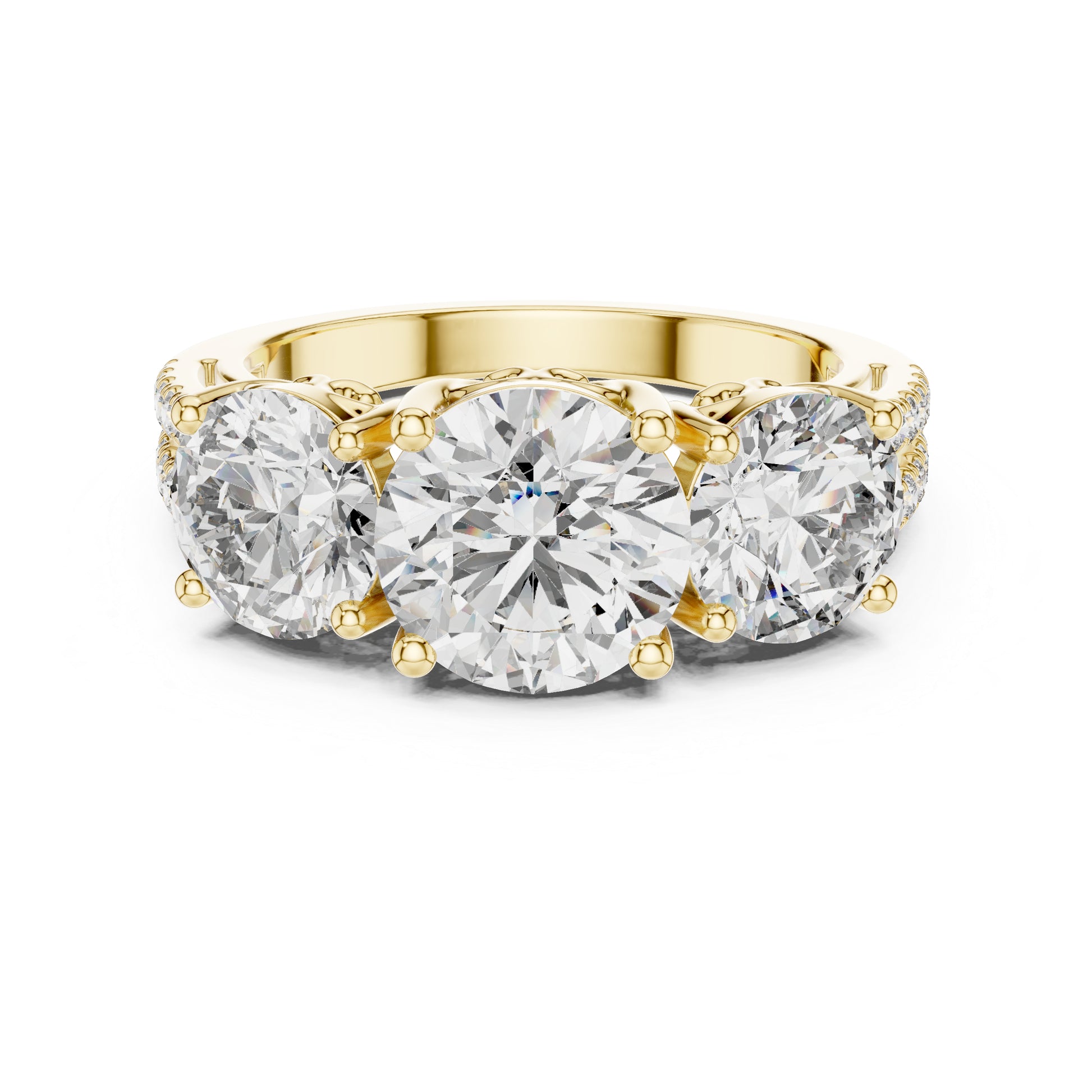 Classic 3 Stone Round and Pear Diamond Engagement Ring in Yellow Gold