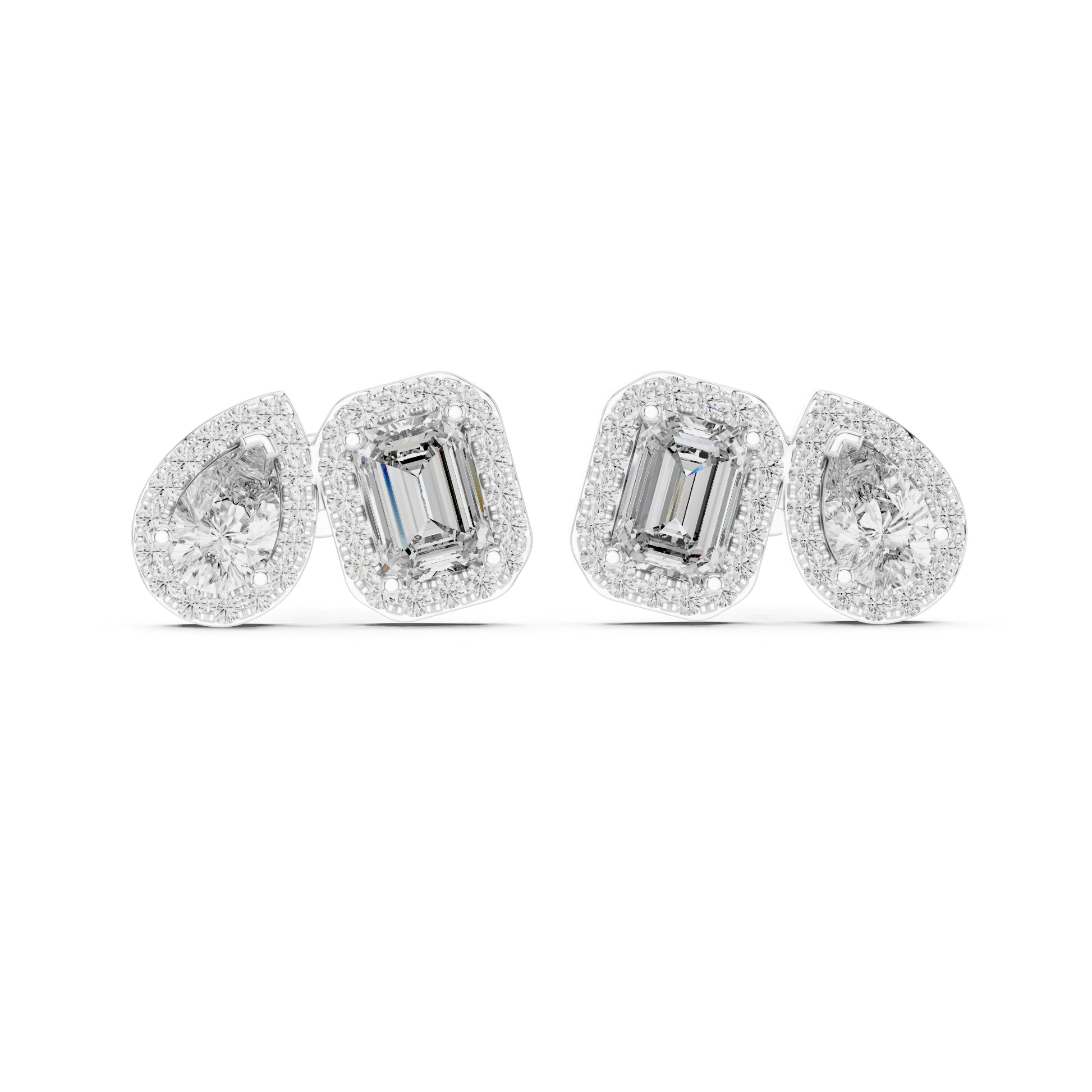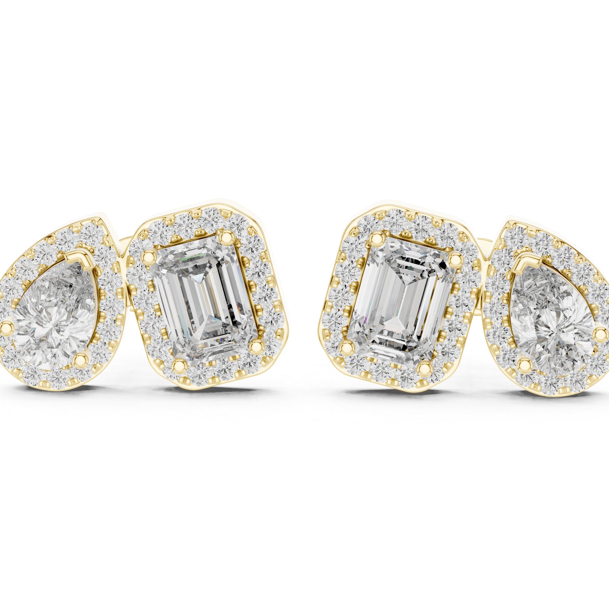 18K Yellow Gold Emerald/Pear/Round Diamond Stud Earrings for Women | Bridal | Pure Carat