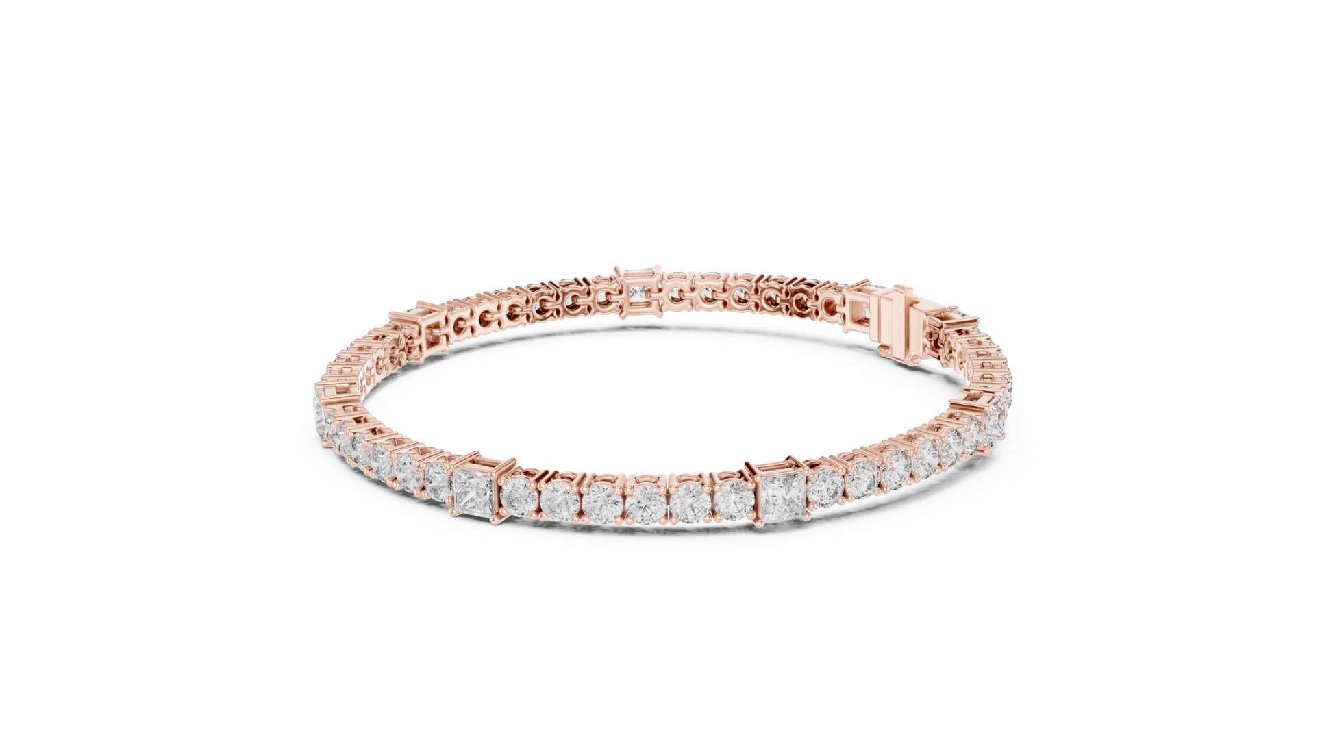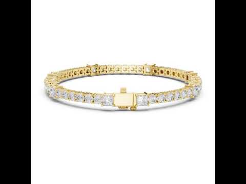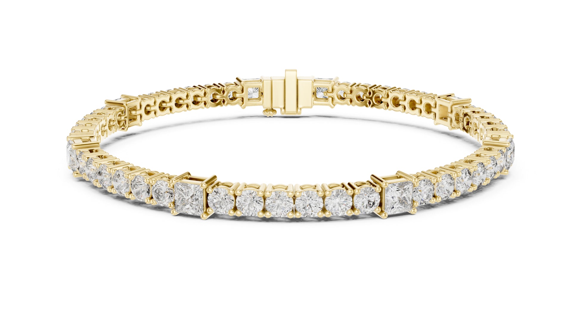 18k Yellow Gold Princess /Round Lab-Grown Diamond Engagement Bracelet for Women | Pure Carat