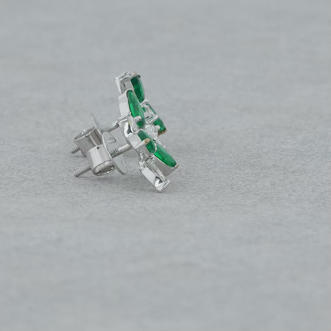 Diamond and Emerald Floral/Cluster Stud Earrings