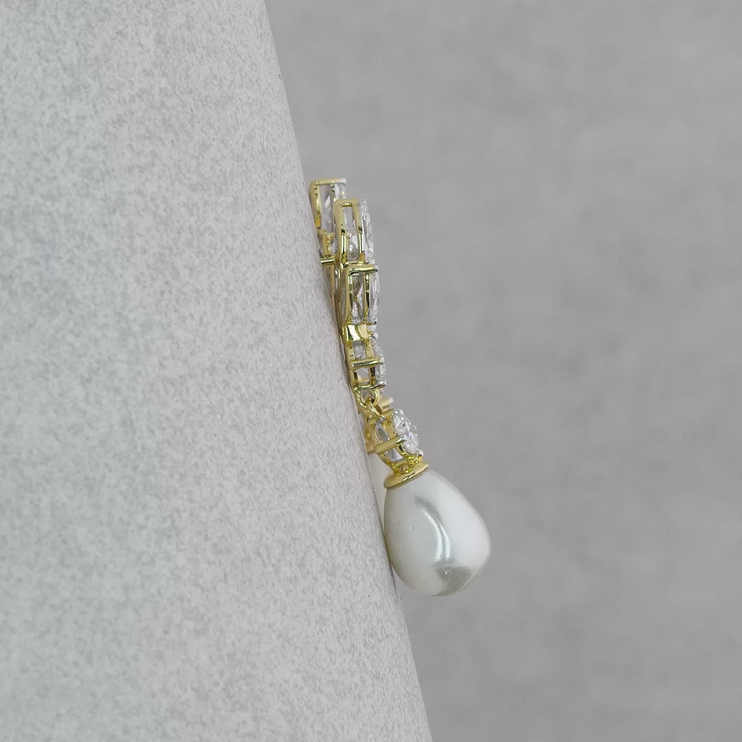 Combining marquise cut diamonds with teardrop pearls, these earrings are crafted in 18K yellow gold. They offer a sophisticated and elegant gift option for any woman.