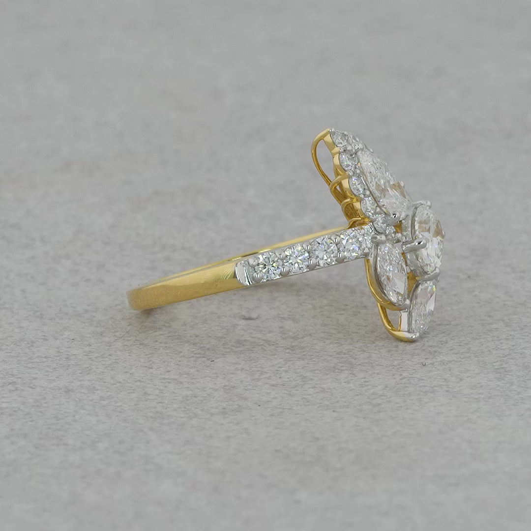 ↦ Pear Cut Diamond Cluster Setting with Accent Ring features a stunning cluster of diamonds that enhance the brilliance of the pear-shaped centerpiece. The Band Add an extra touch of sparkle, creating a timeless and sophisticated look.