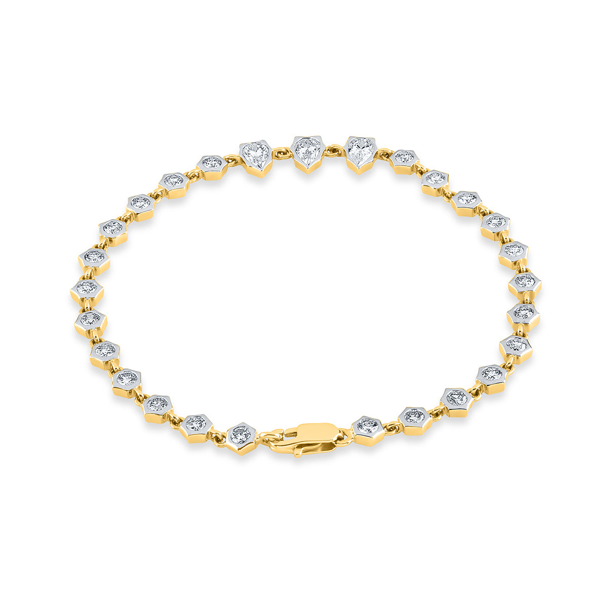 This fancy tennis bracelet features pear cut diamonds set in 14K solid yellow gold, perfect for weddings and special occasions.