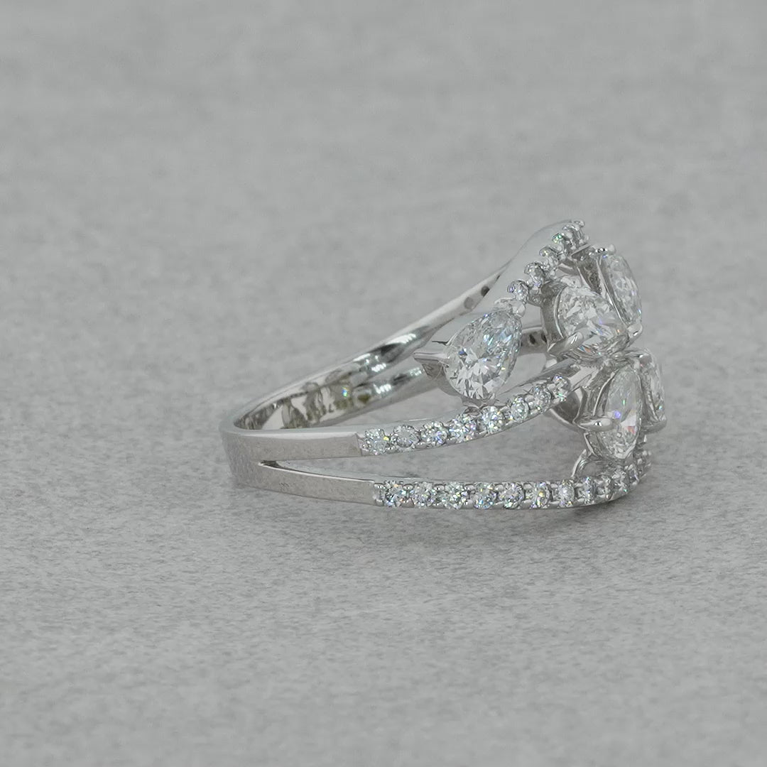 ↦Explore Purecarat's collection of yellow gold pear diamond ladies cocktail rings, including this captivating multi-row design. High quality and brilliant for every cherished moment.