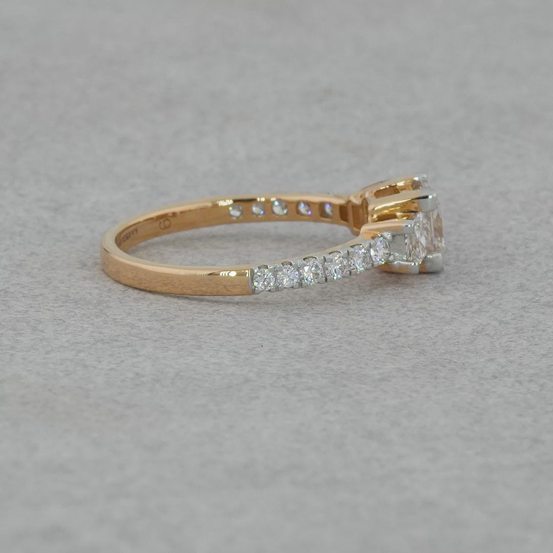 Classic 3 Stone Round and Pear Diamond Engagement Ring in Yellow Gold
