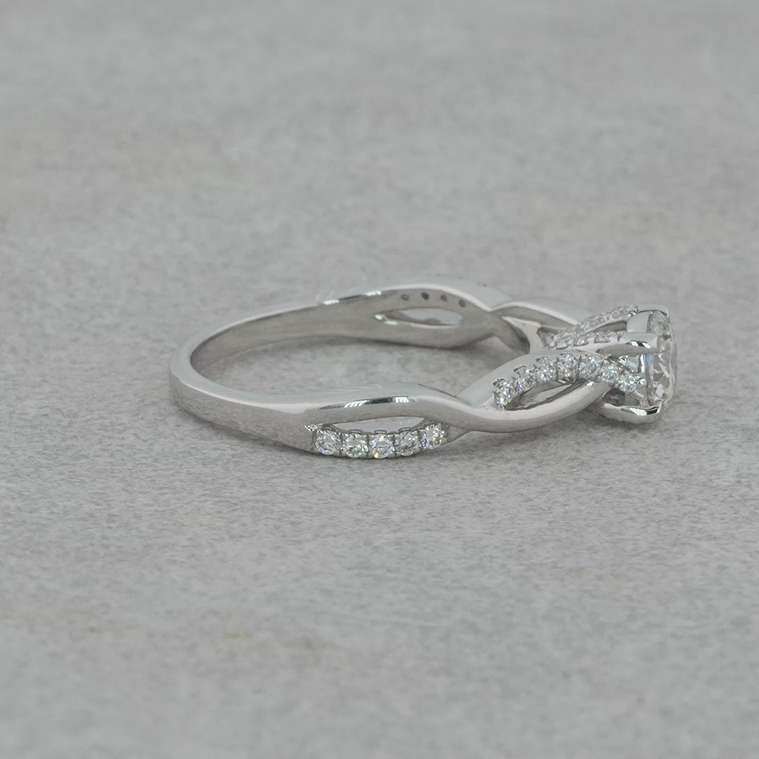 ↦ Round Cut Diamond Crossover Unique Ring is a modern masterpiece, combining elegance with a distinctive design. Featuring a brilliant Round Cut Diamond, the crossover band design creates a graceful and contemporary look, symbolizing unity and infinite love.