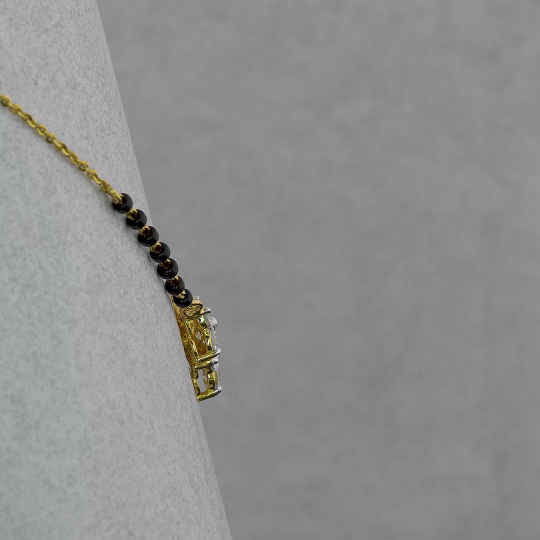 Designed for brides and everyday wear, this mangalsutra combines traditional floral motifs with round cut diamonds set in 14K solid yellow gold. A blend of culture and elegance.