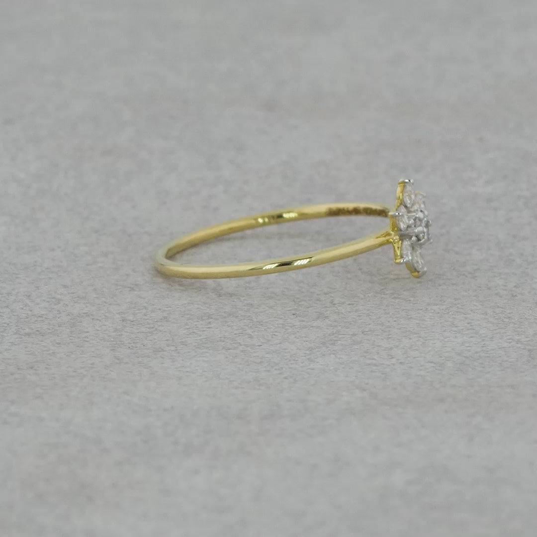 Seven round cut diamonds shine in a unique setting on this 14K solid yellow gold ring, designed by PureCarat for those who appreciate bold, modern style with classic sparkle.