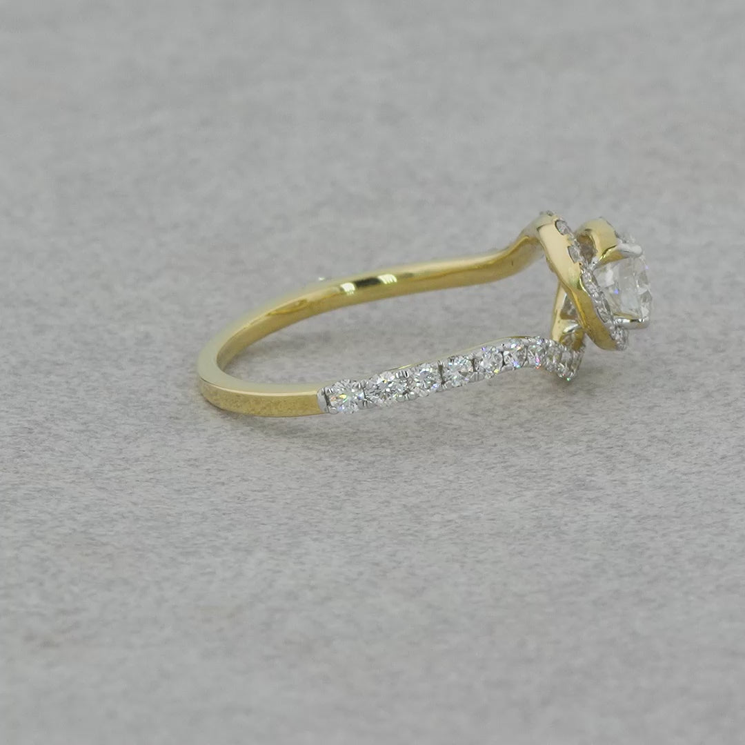 purecarat Round Diamond Halo Twisted/Crossover Ring