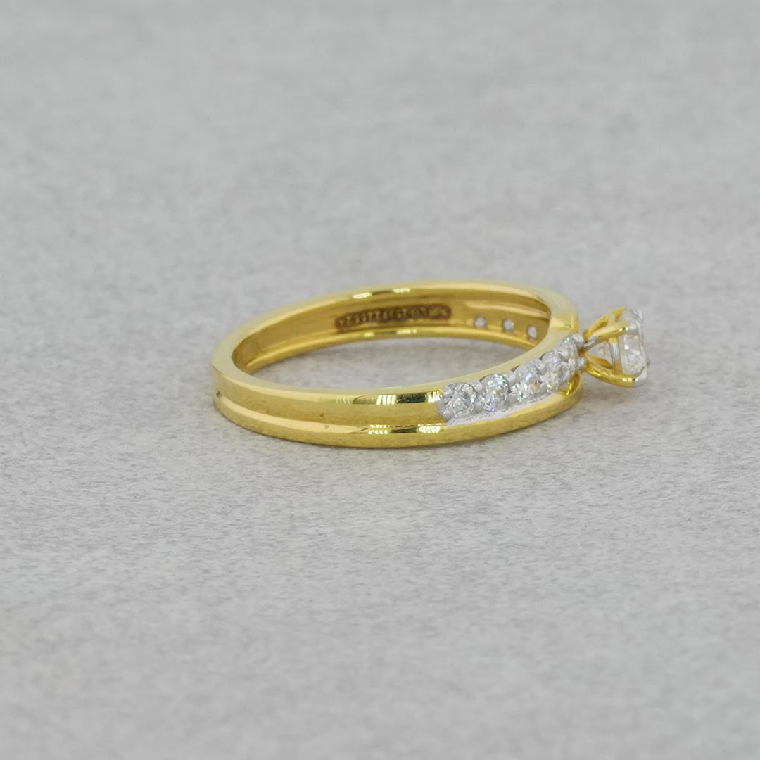 Purecarat Round Diamond Engagement Ring with Pave Yellow Gold Band | Solitaire with Accents Ring