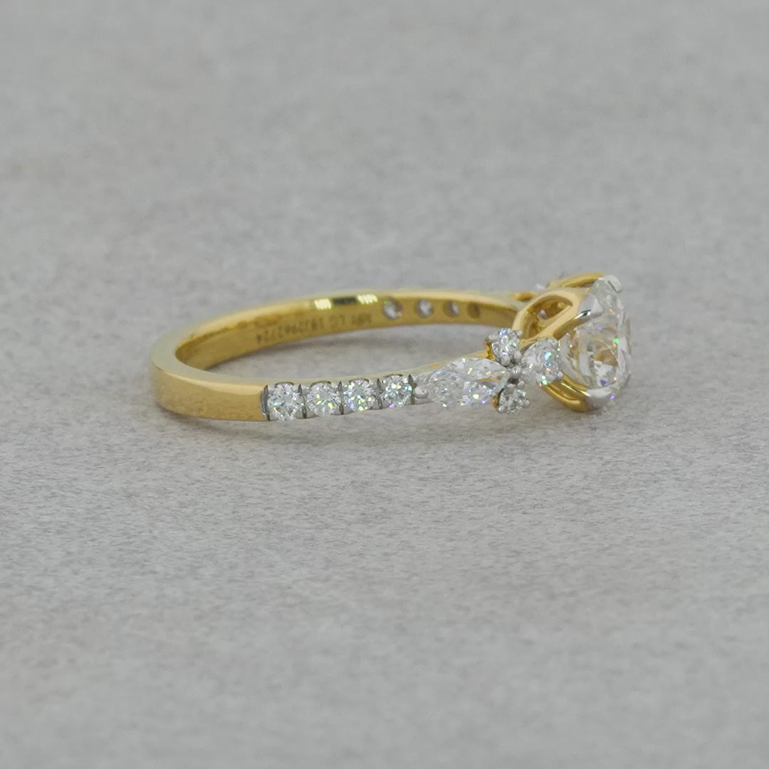 ↦ Discover Purecarat's stunning yellow gold five-stone diamond ring, featuring a brilliant round center and marquise accents. Perfect for engagement or anniversary.