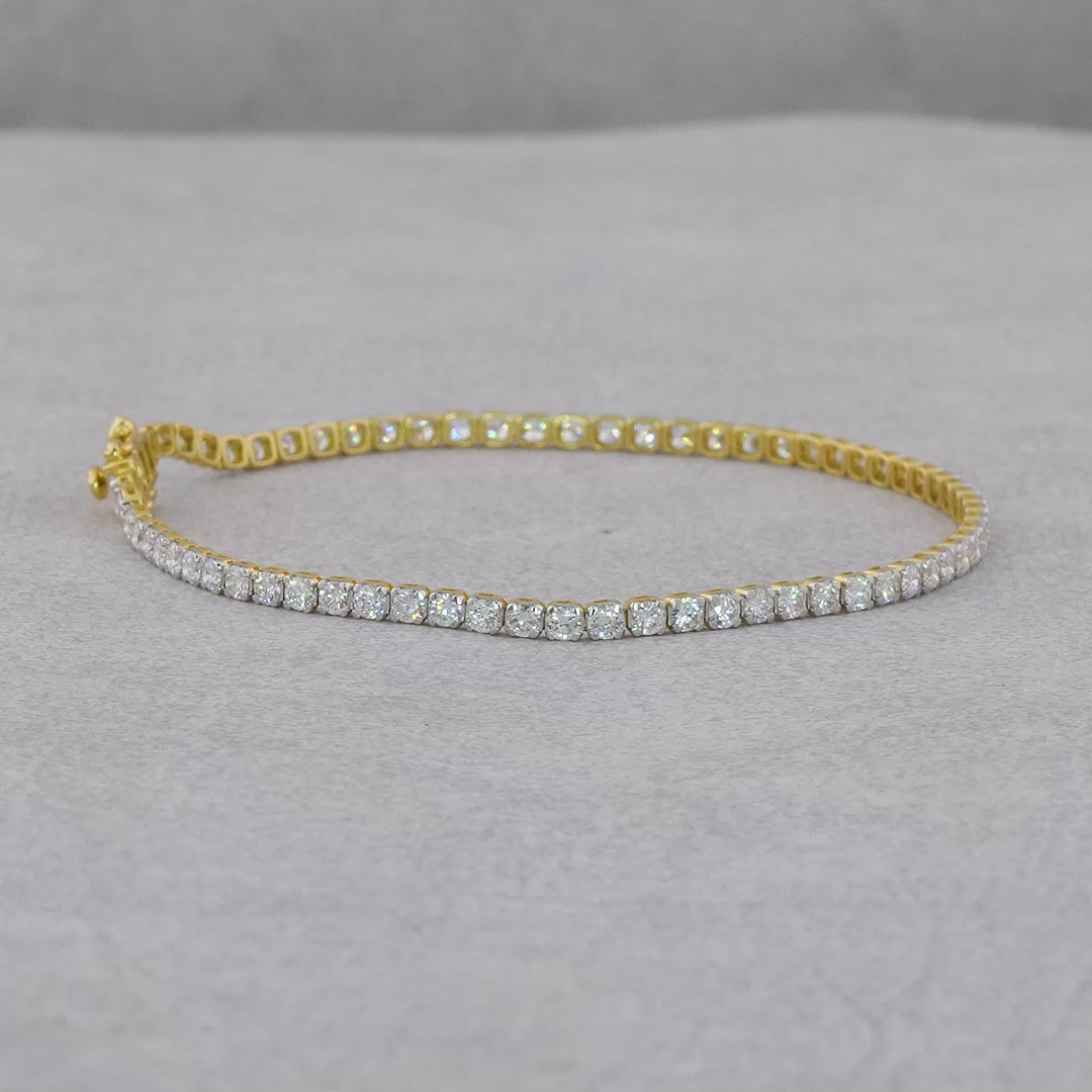 This delicate tennis bracelet features round cut diamonds set in 14K yellow gold, perfect for adding refined sparkle to any outfit.