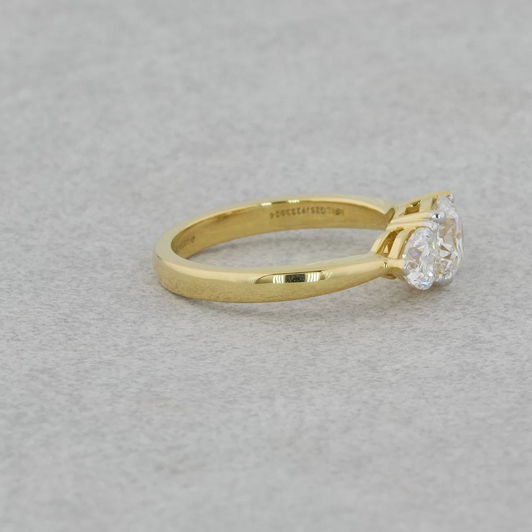 Classic 3 Stone Round and Pear Diamond Engagement Ring in Yellow Gold