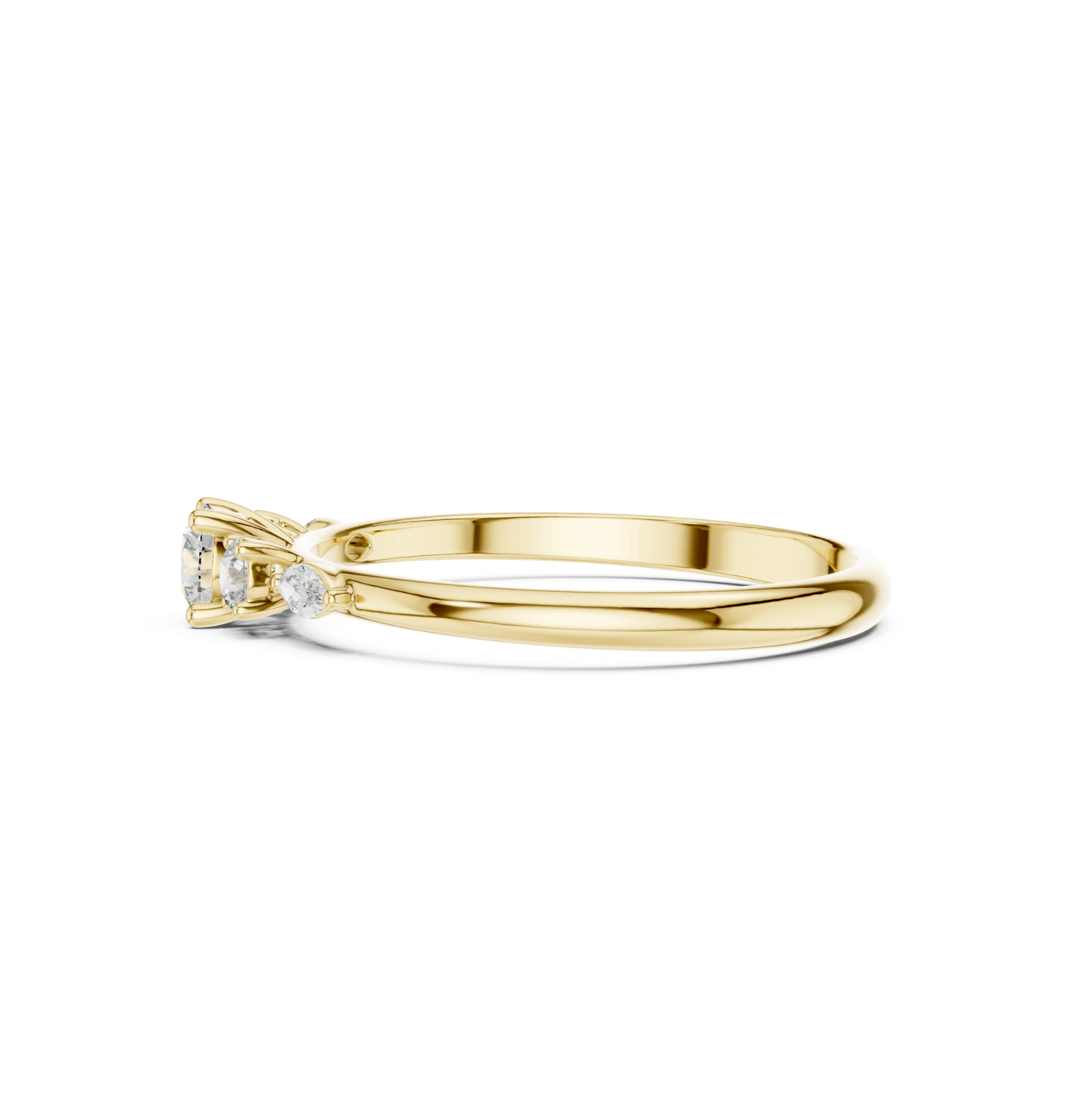 Classic 3 Stone Round and Pear Diamond Engagement Ring in Yellow Gold