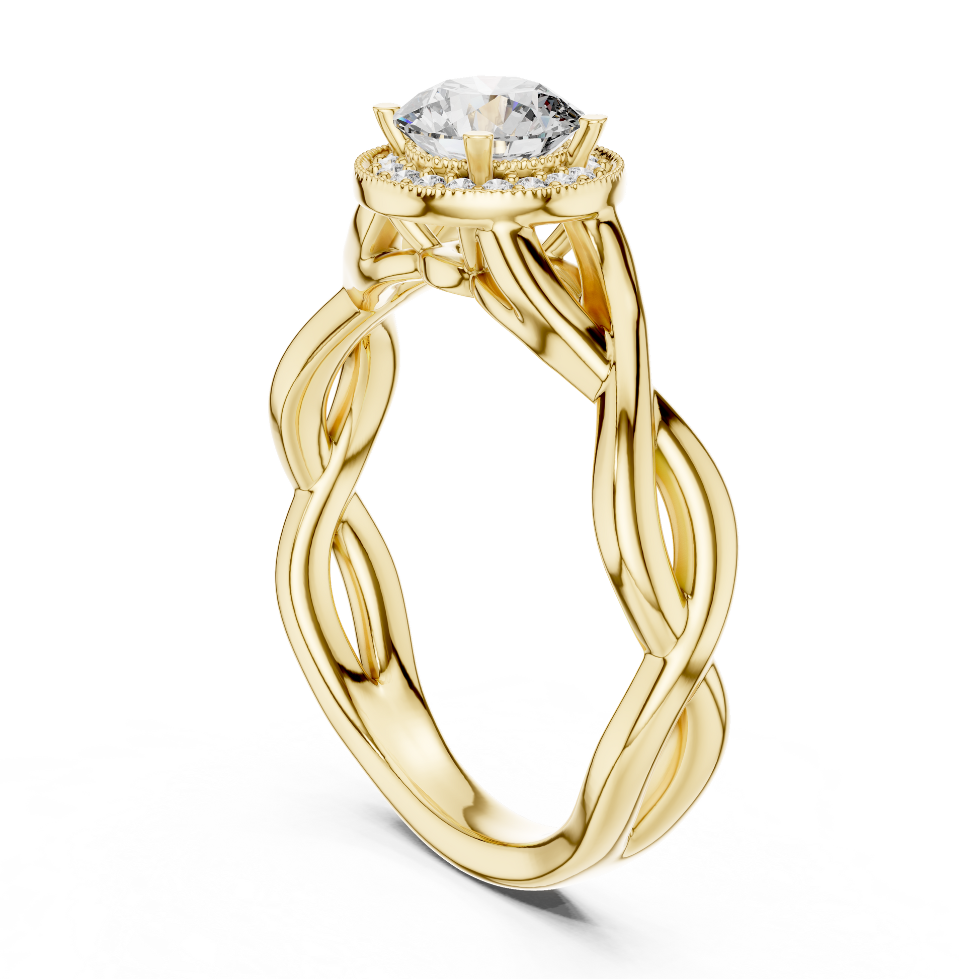 This elegant ring features a brilliant-cut solitaire diamond set in a secure prong setting, beautifully elevated above an intricately twisted rose gold band. The braided design symbolizes eternal unity, while the warm rose gold adds a romantic charm. Perfect as an engagement ring or a timeless statement piece, this design blends modern craftsmanship with classic elegance.